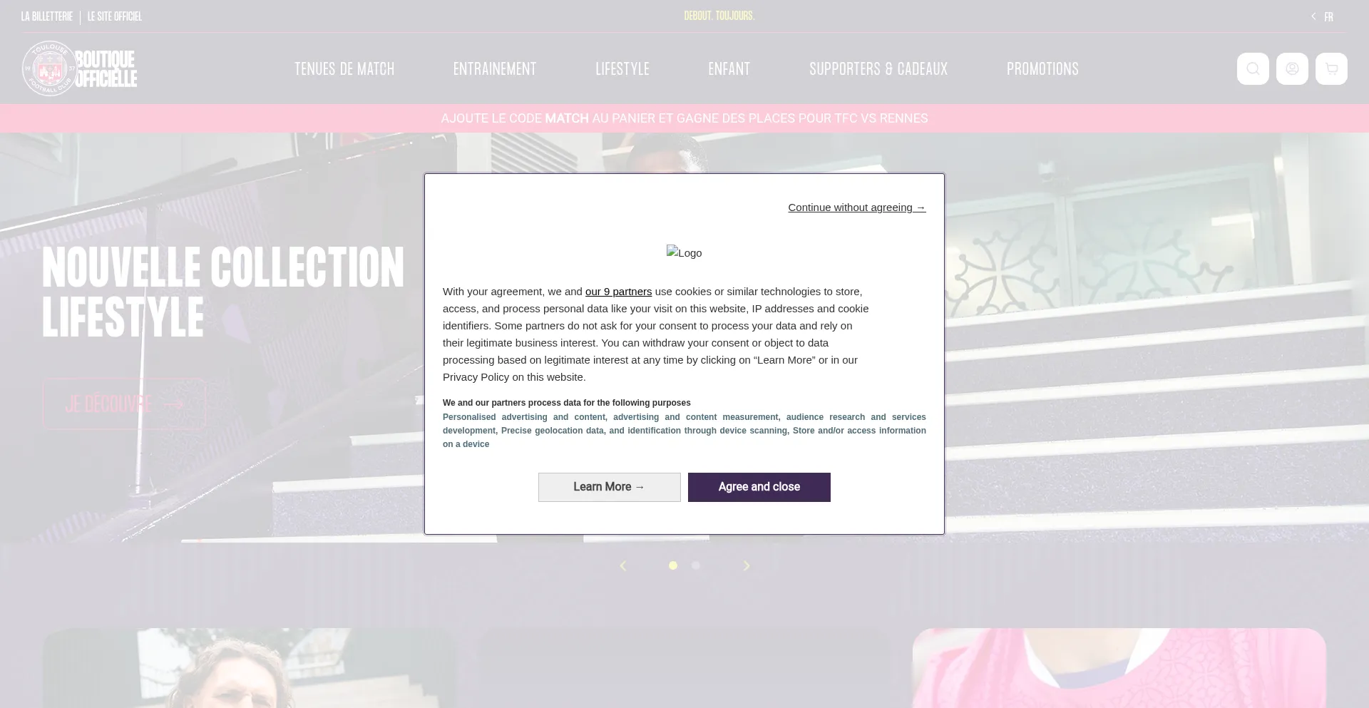 The website implements cookie consent mechanisms in compliance with privacy regulations such as GDPR or CCPA. This demonstrates that boutique.toulousefc.com adheres to data protection standards and provides users with control over personal data collection practices.