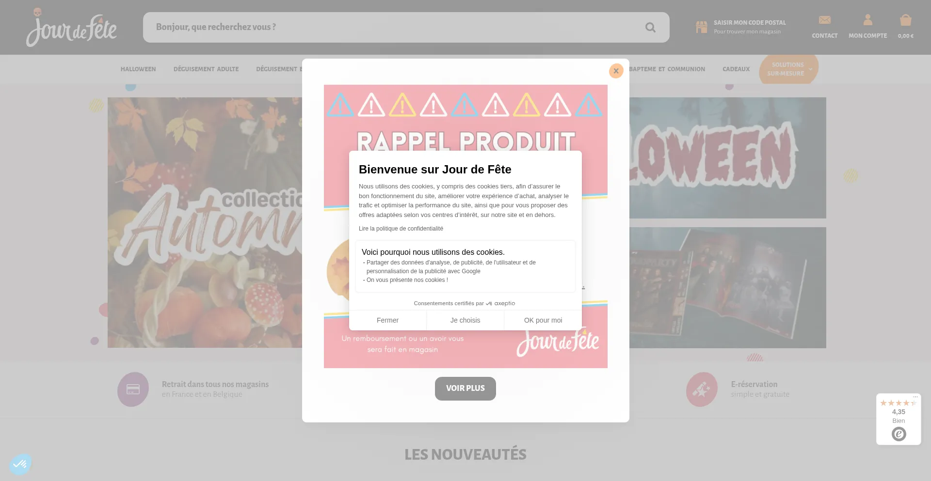 Retrouvez sur Jour de Fête un large choix de déguisements, d'articles de décoration et d'idées cadeaux pour réussir toutes vos Fêtes : Anniversaire, Mariage, Noël, Carnav...