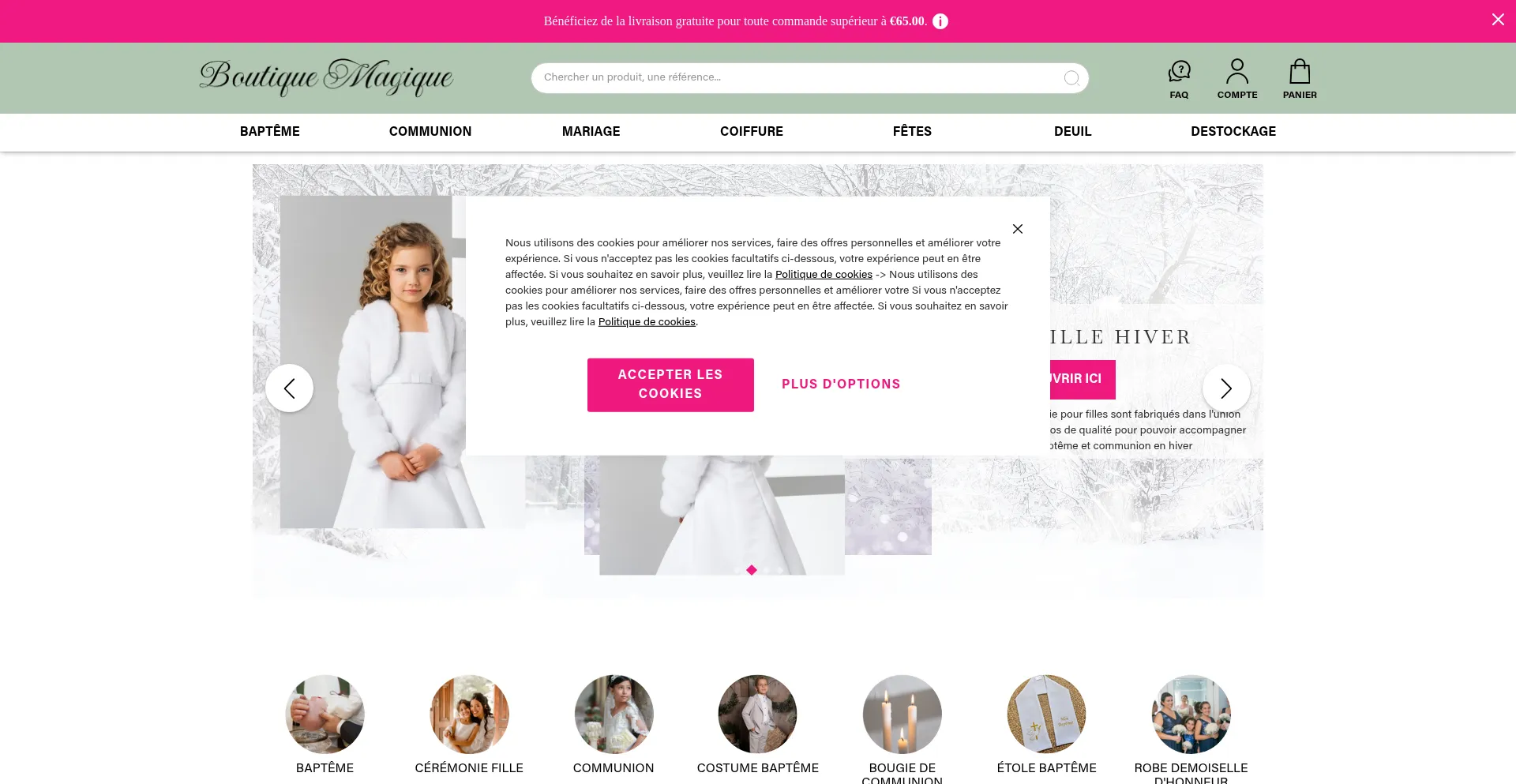 Boutique Magique, n°1 en France, habille votre cérémonie à petits prix ! Costume pour garçon, robe pour fille ou femme, chaussures et accessoires coiffure. Baptême, commun...