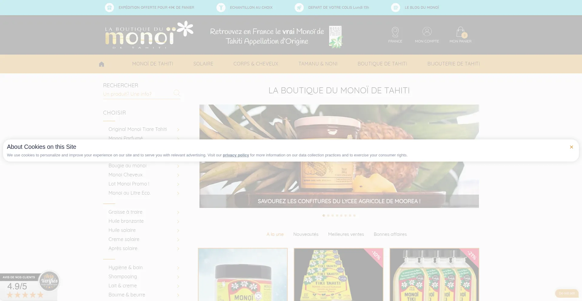 The boutique-monoi-tahiti.com website uses Google Tag Manager to add and update tracking tags on its website.