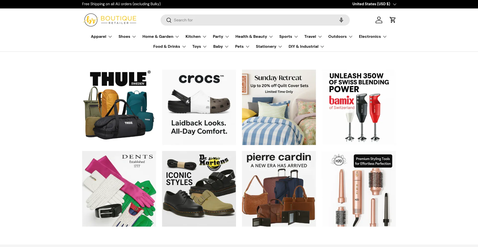 Boutique Retailer is Australia's premier online shopping destination for boutique brands offering amazing deals on apparel, shoes, homewares, costumes and more!