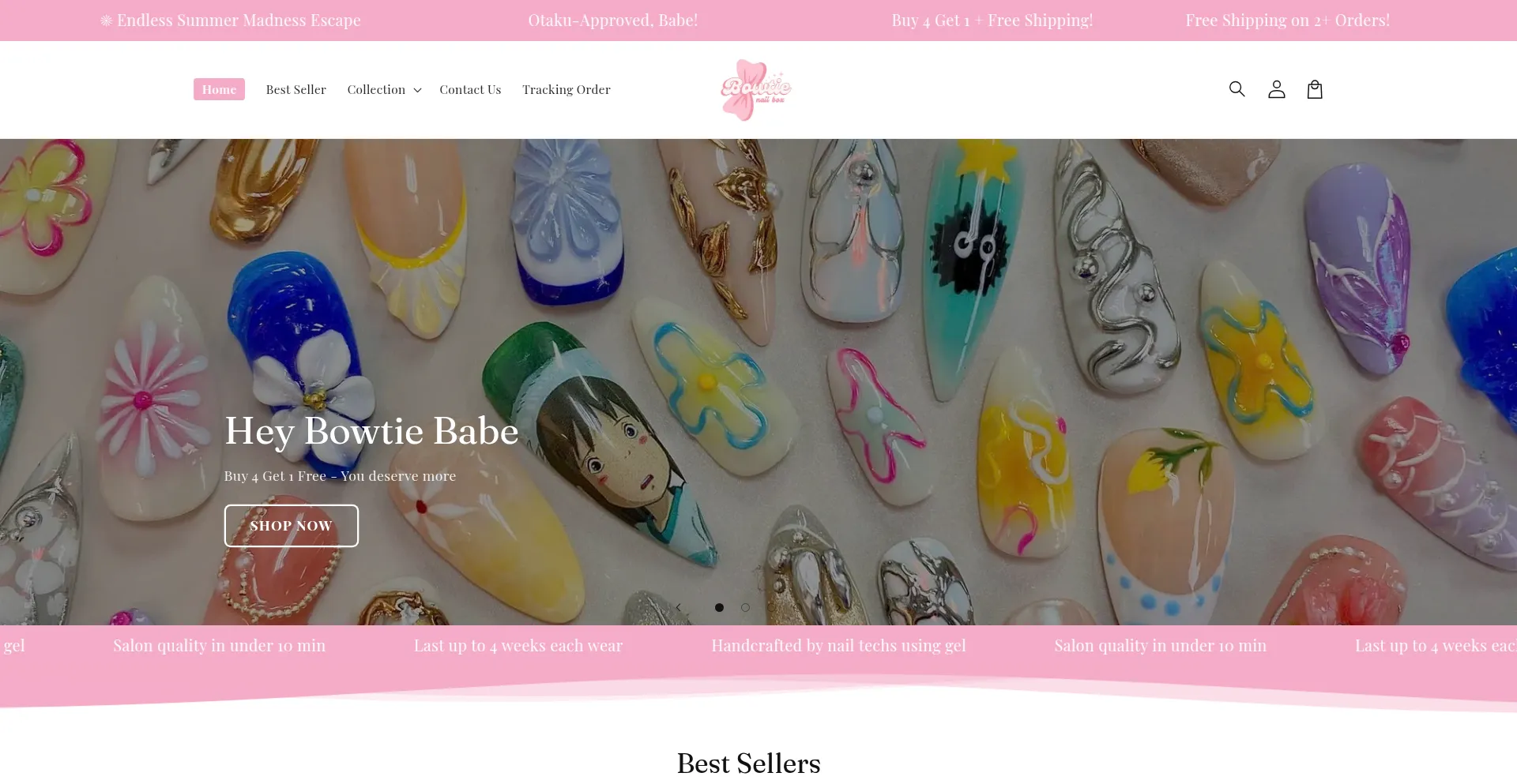 Discover handcrafted press-on nails by Bowtie Nail Box—reusable, salon-quality, and ready in minutes. Free shipping on 2+ sets, 30-day guarantee.