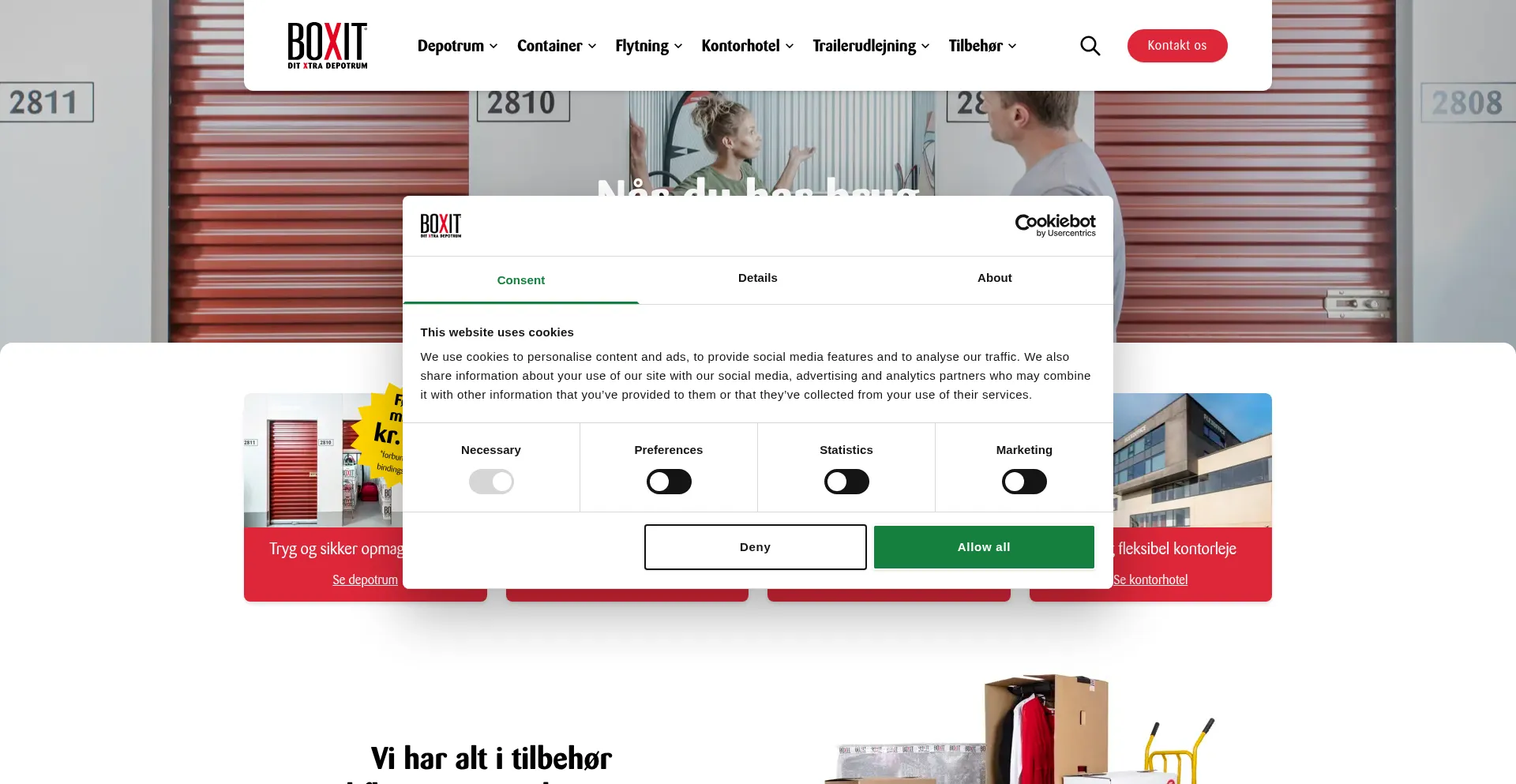The website implements cookie consent mechanisms in compliance with privacy regulations such as GDPR or CCPA. This demonstrates that boxit.dk adheres to data protection standards and provides users with control over personal data collection practices.