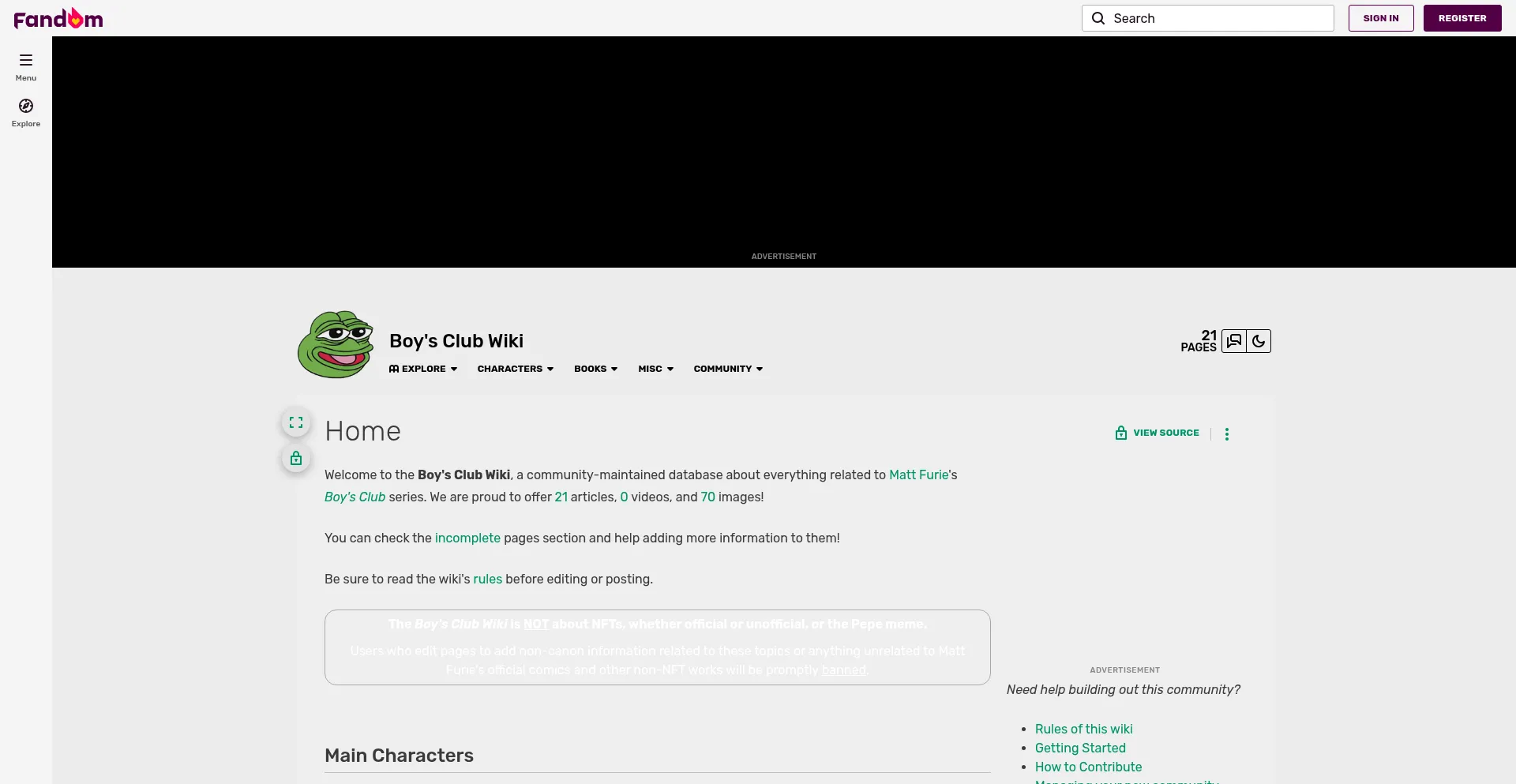 Welcome to the Boy's Club Wiki, a community-maintained database about everything related to Matt Furie's Boy's Club series.