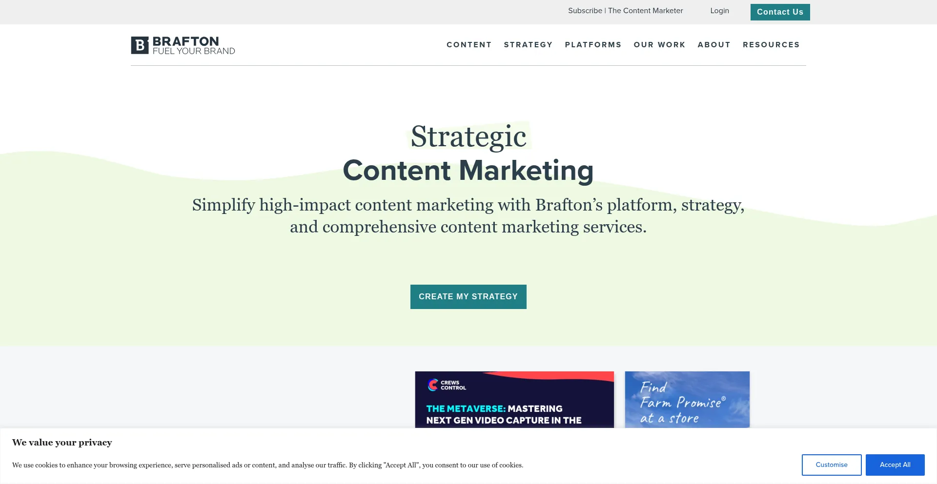 The website implements cookie consent mechanisms in compliance with privacy regulations such as GDPR or CCPA. This demonstrates that brafton.com adheres to data protection standards and provides users with control over personal data collection practices.