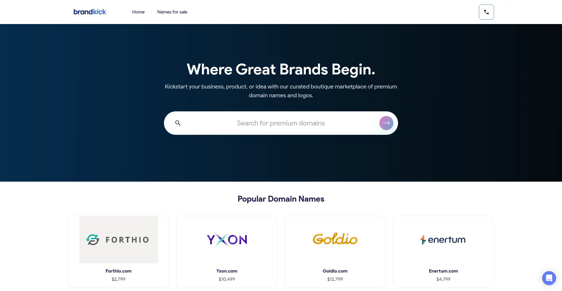 Looking for a domain name? Shop for a great collection of domain names at brandkick.com. Payment plans available on most domains.