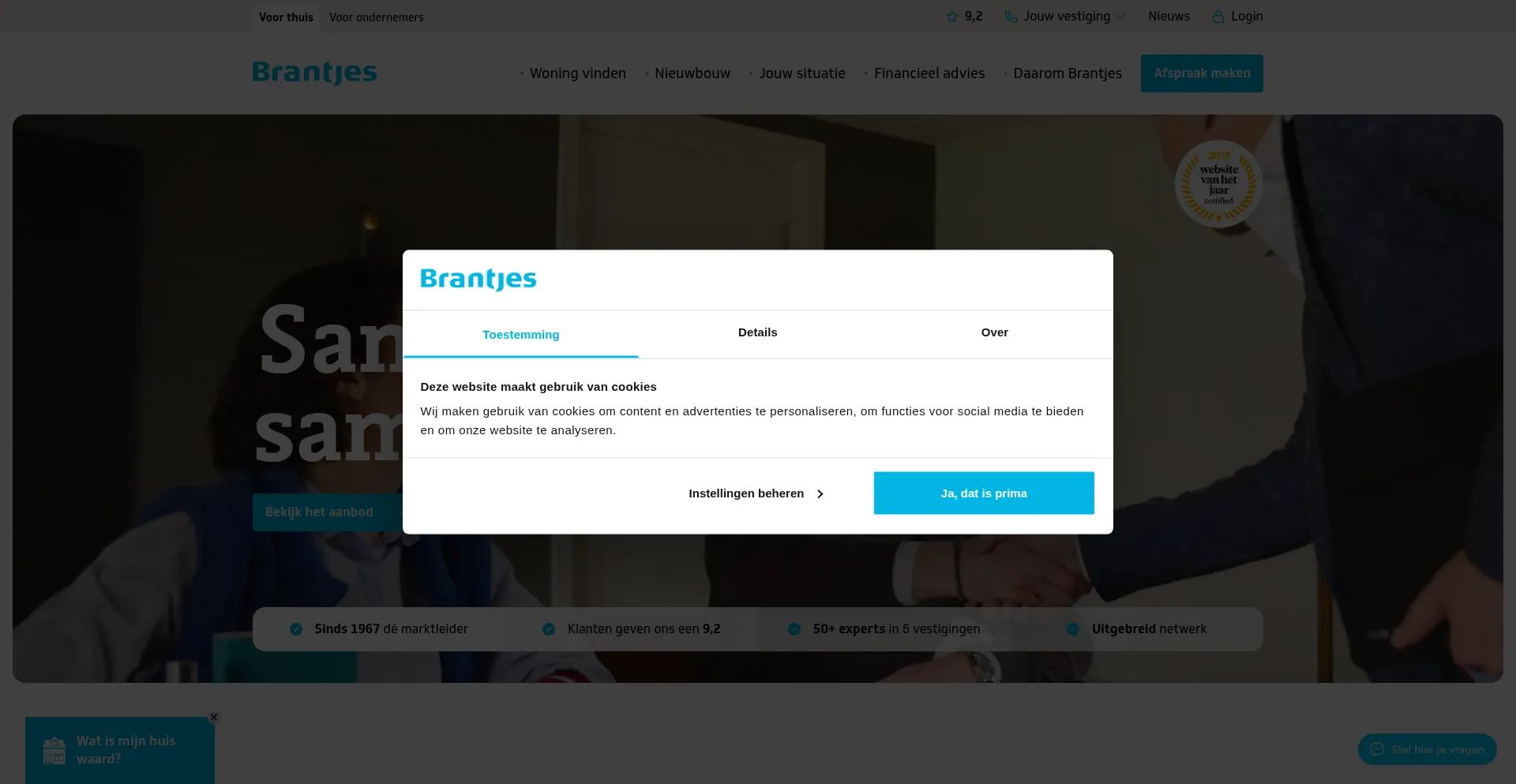 The website implements cookie consent mechanisms in compliance with privacy regulations such as GDPR or CCPA. This demonstrates that brantjesmakelaars.nl adheres to data protection standards and provides users with control over personal data collection practices.