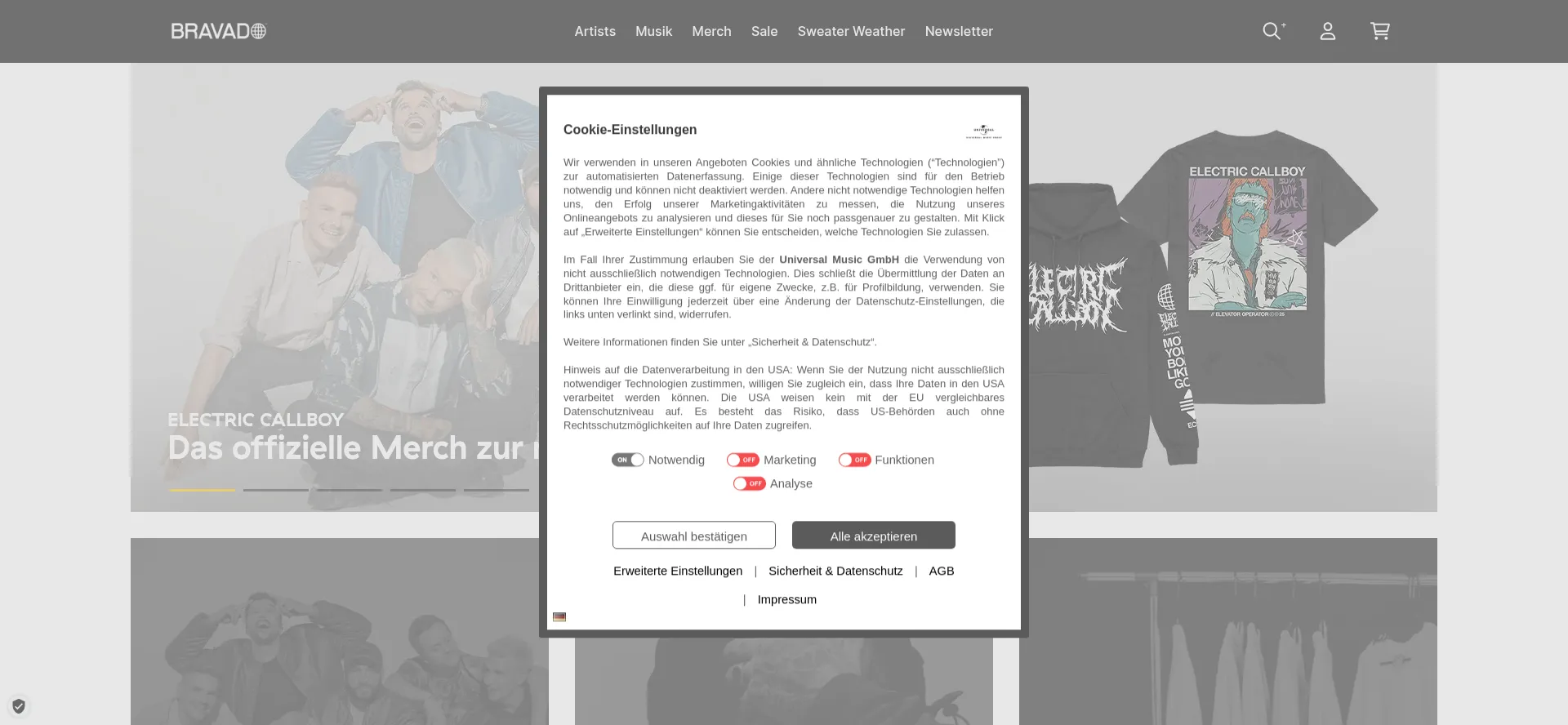 Analysis indicates that bravado.de operates as an e-commerce platform facilitating online transactions for goods or services. The website implements shopping cart functionality, payment processing systems, and product catalog features typical of commercial retail operations.