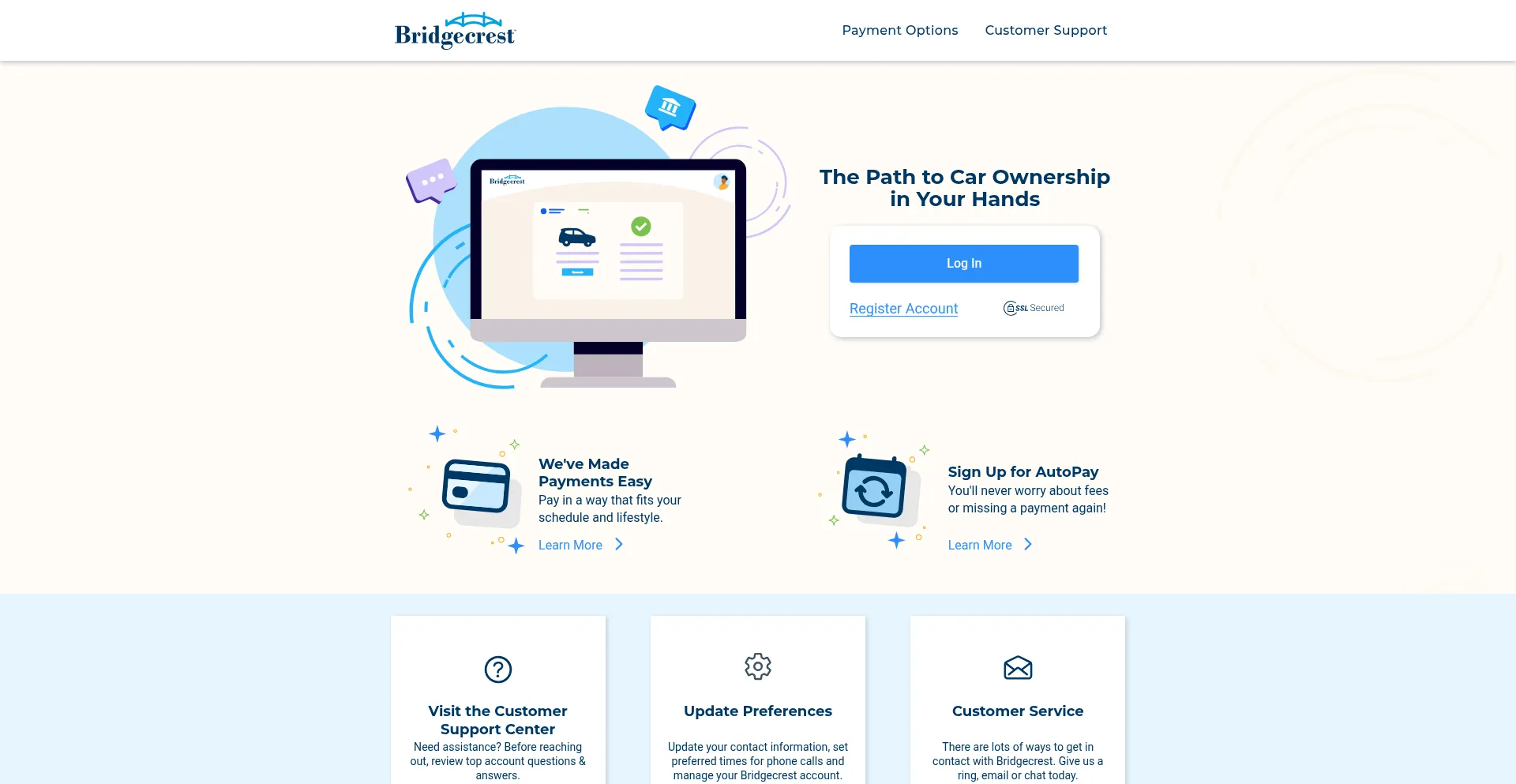 Keep your vehicle finances on the road to success with Bridgecrest. We make it easy to manage your account online, find convenient payment options, and get assistance when you n...