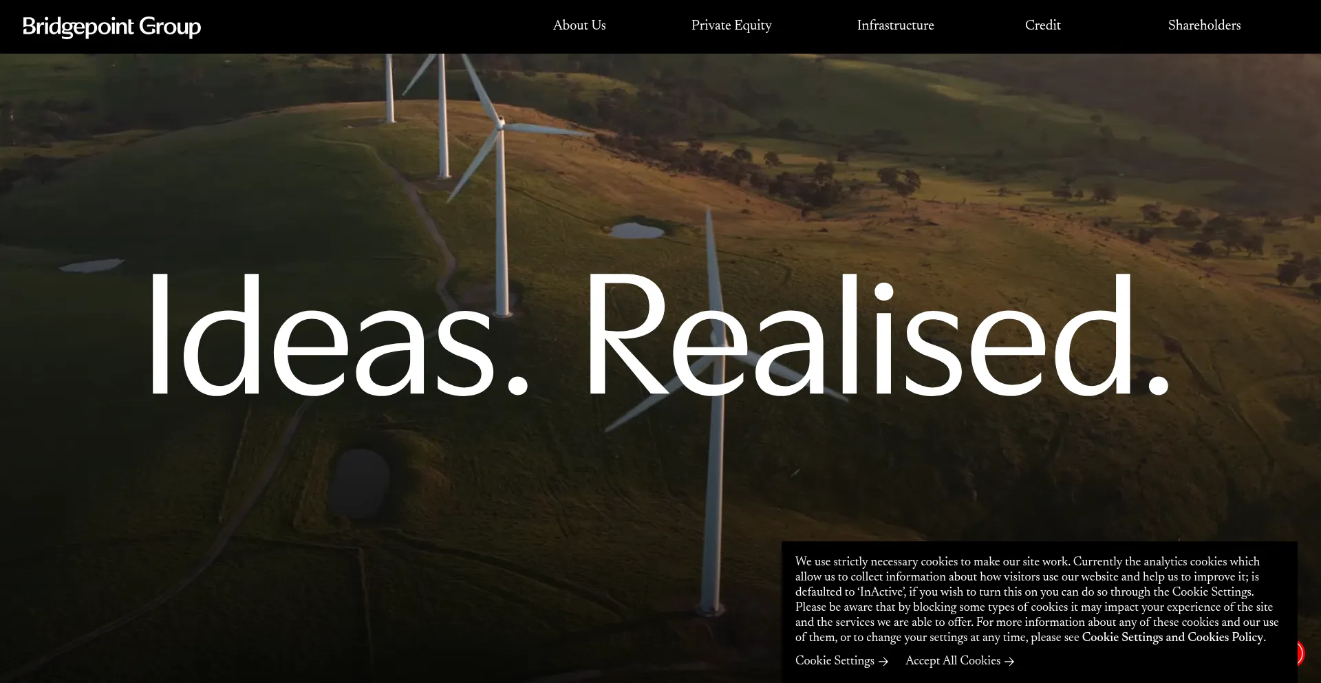 The website implements cookie consent mechanisms in compliance with privacy regulations such as GDPR or CCPA. This demonstrates that bridgepointgroup.com adheres to data protection standards and provides users with control over personal data collection practices.
