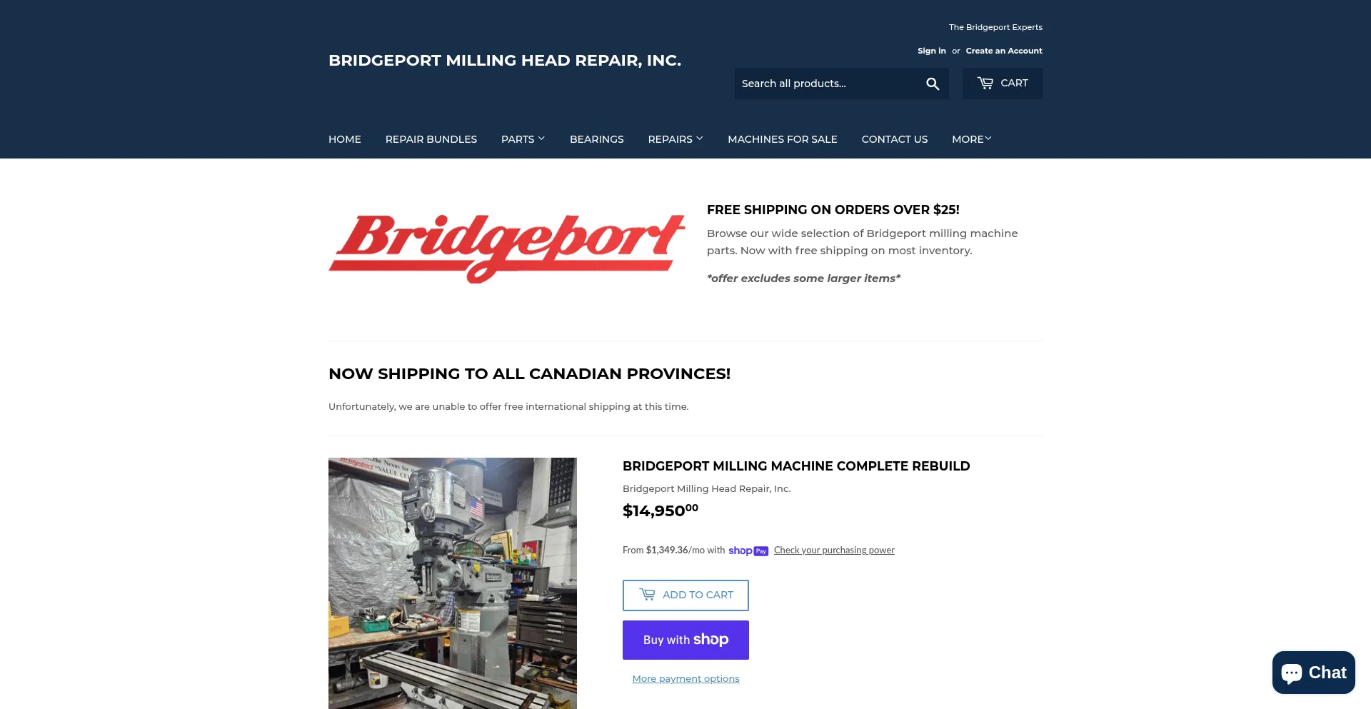 Our analyzer determines that website bridgeportparts.com is using Shopify CMS. Shopify is a popular e-commerce platform, powering around 4.4% of websites globally.