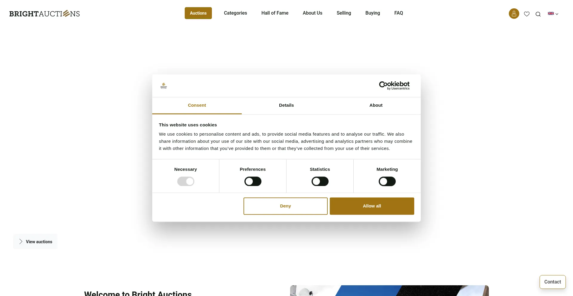 The website implements cookie consent mechanisms in compliance with privacy regulations such as GDPR or CCPA. This demonstrates that brightauction.com adheres to data protection standards and provides users with control over personal data collection practices.