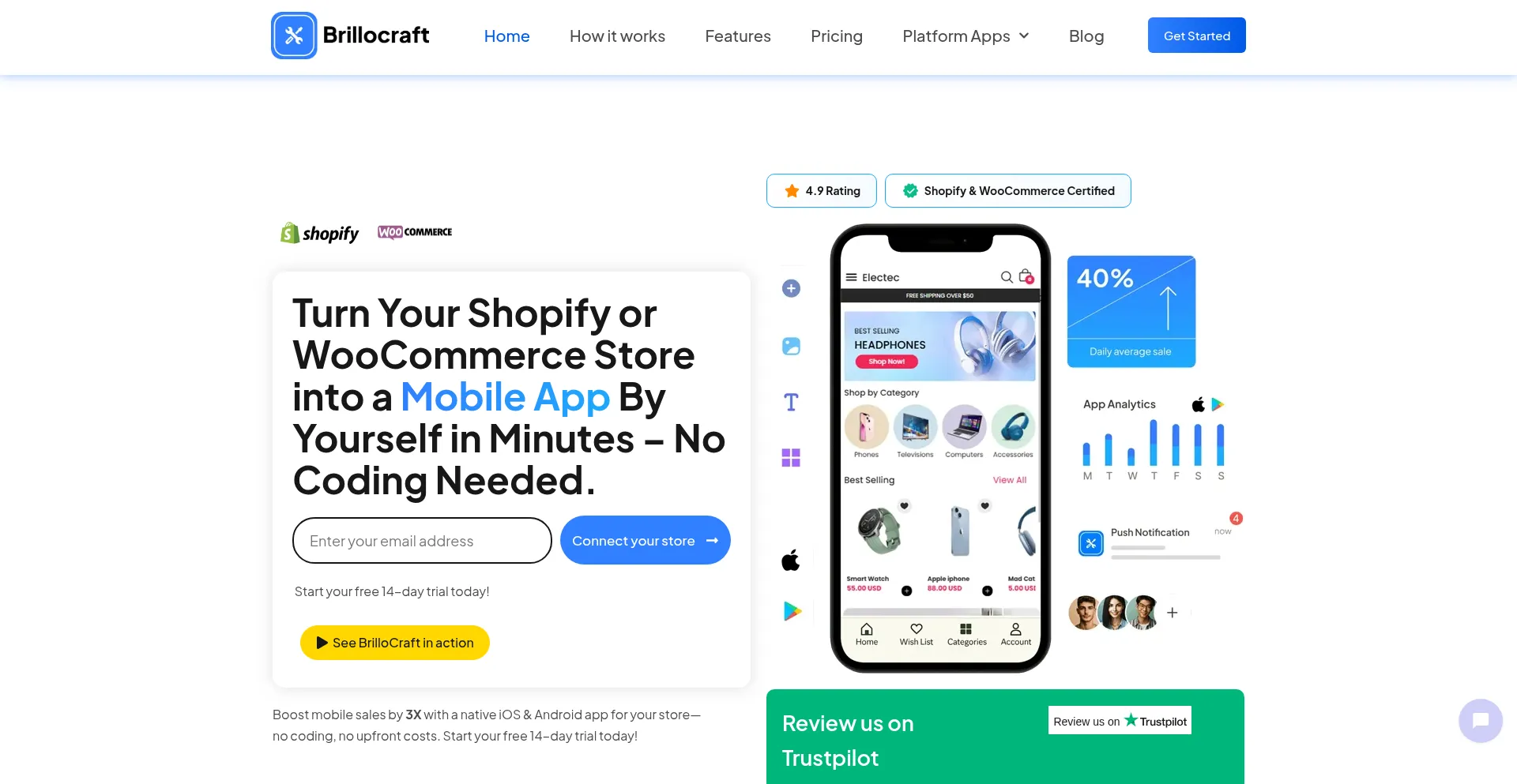 Build a custom mobile app for your store. Brillocraft helps you create seamless shopping experiences, improving engagement and boosting sales with ease.