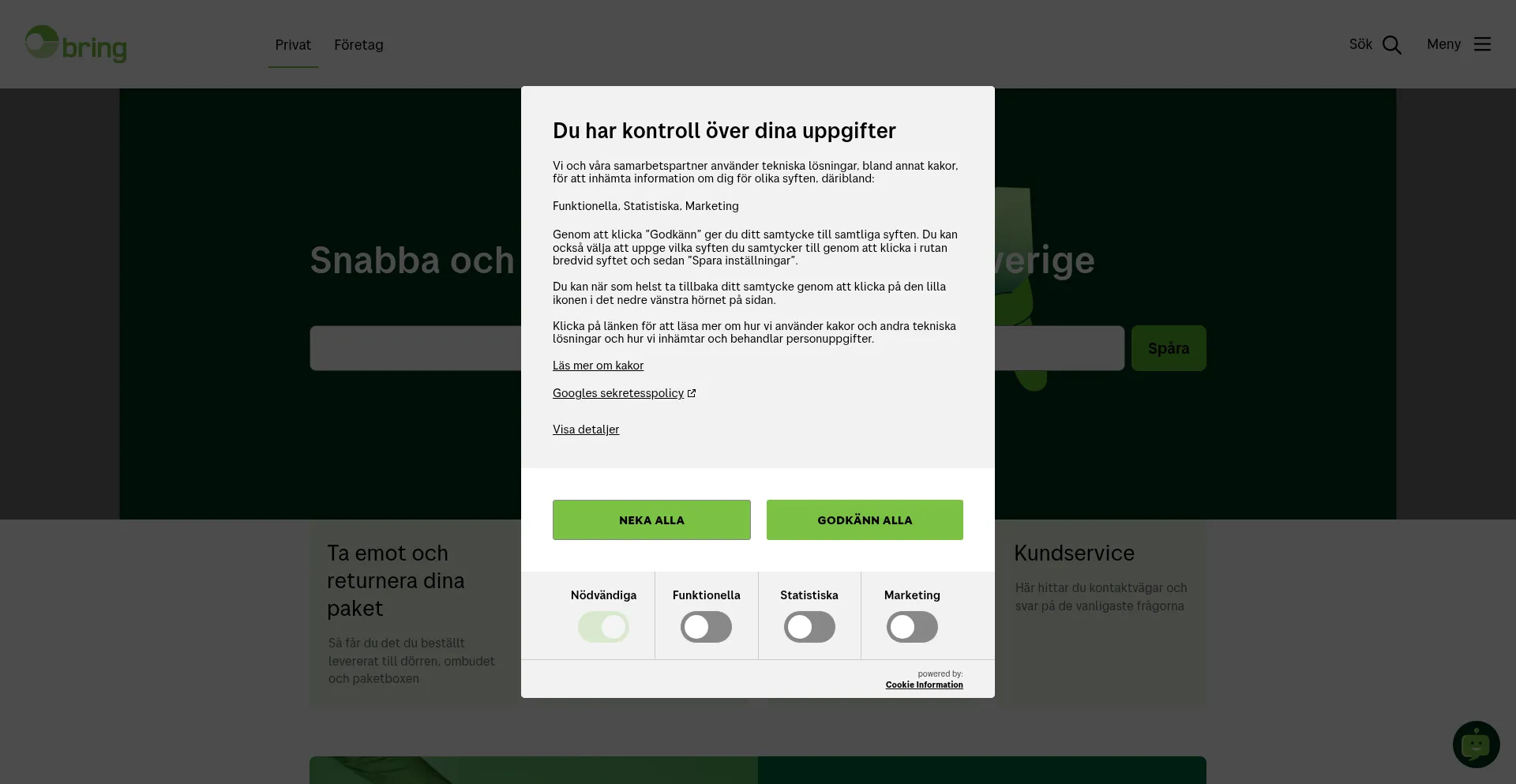 The bring.se website uses Google Tag Manager to add and update tracking tags on its website.