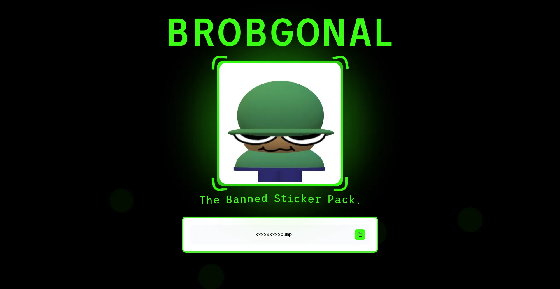 Brobgonal was originally a discord sticker pack that was removed and banned. He was too powerful for the servers. Now he lives on the chain.