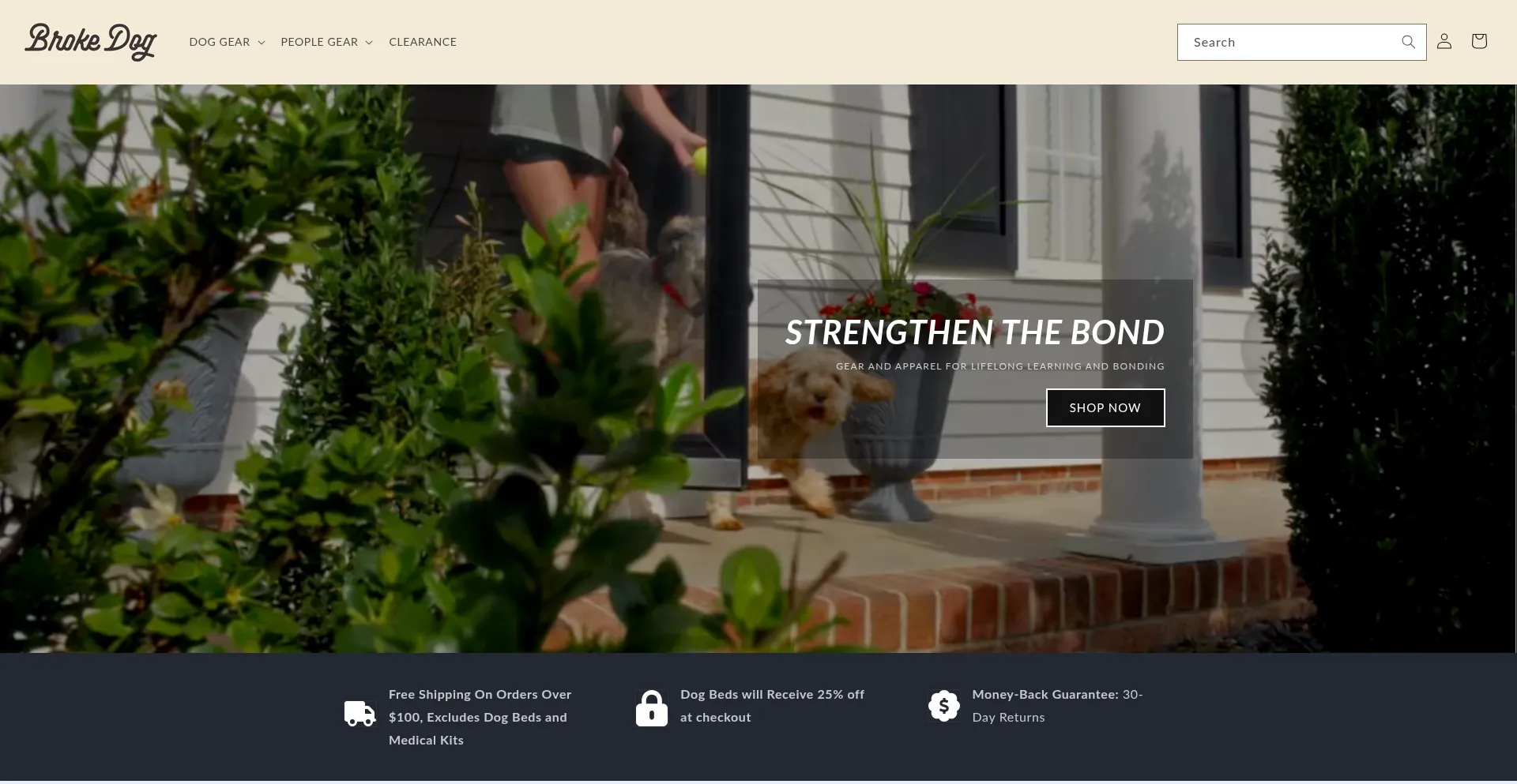 Analysis indicates that brokedogcompany.com operates as an e-commerce platform facilitating online transactions for goods or services. The website implements shopping cart functionality, payment processing systems, and product catalog features typical of commercial retail operations.