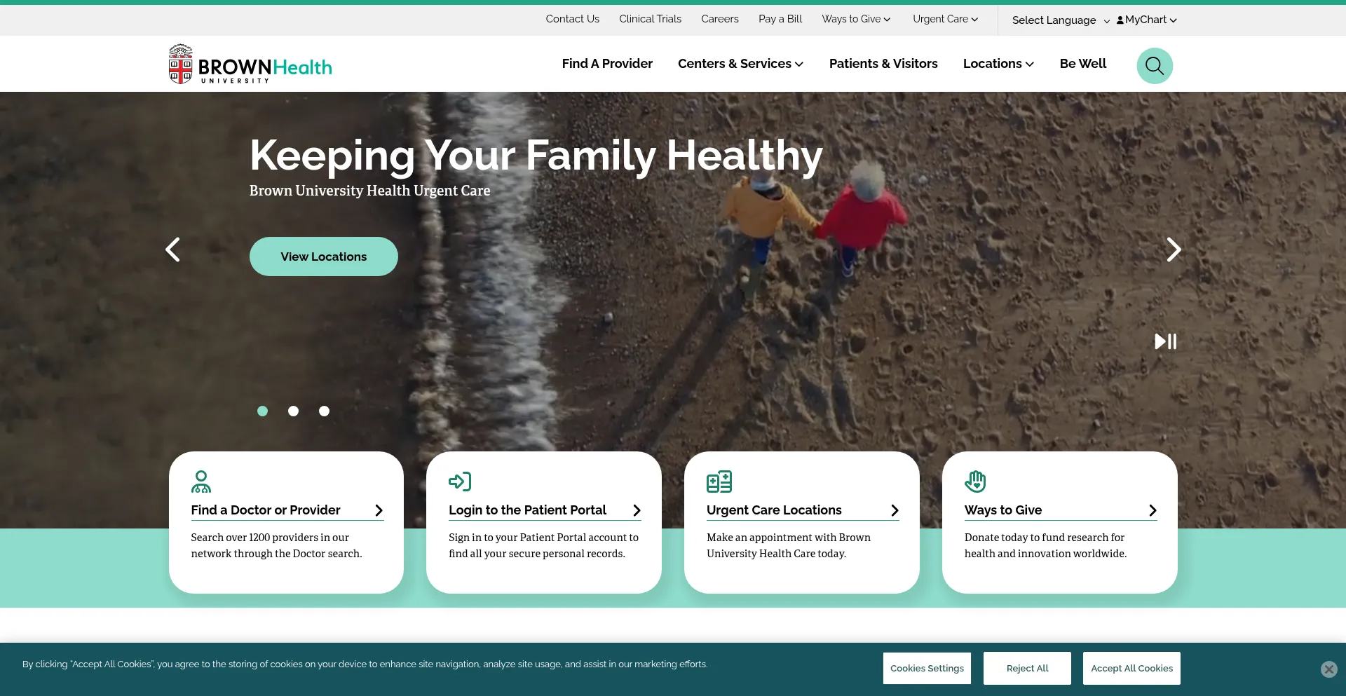 The website implements cookie consent mechanisms in compliance with privacy regulations such as GDPR or CCPA. This demonstrates that brownhealth.org adheres to data protection standards and provides users with control over personal data collection practices.