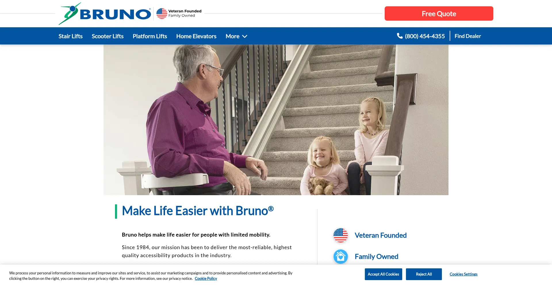 Bruno a veteran-founded, family-owned accessibility products company delivering the highest quality stair lifts, scooter lifts, platform lifts & home elevators