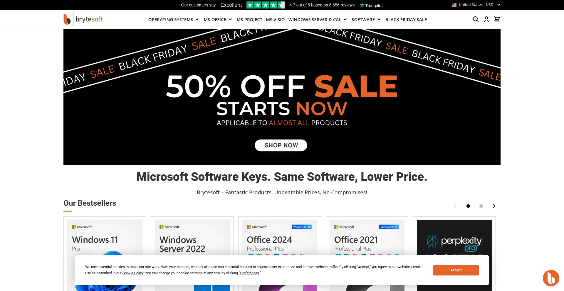 brytesoft.com has a good Trustpilot score (4.7) based on 6656 reviews, indicating a high level of trust from customers. It is a good sign of legitimacy!