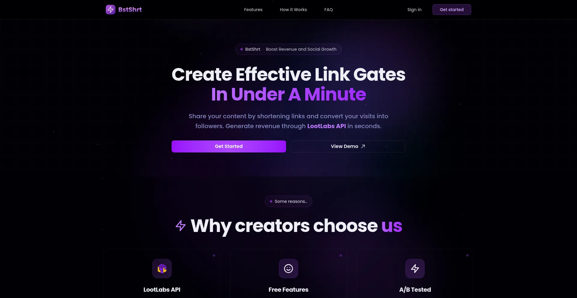 Share your content by shortening links and convert your visits into followers. Generate revenue through Lootlabs with 0% commission. Made for all creators.