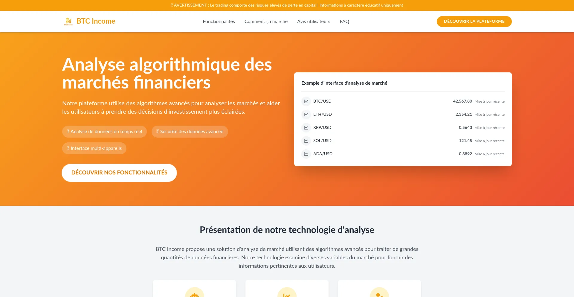 BTC Income | Plateforme d'analyse algorithmique pour les marchés financiers
