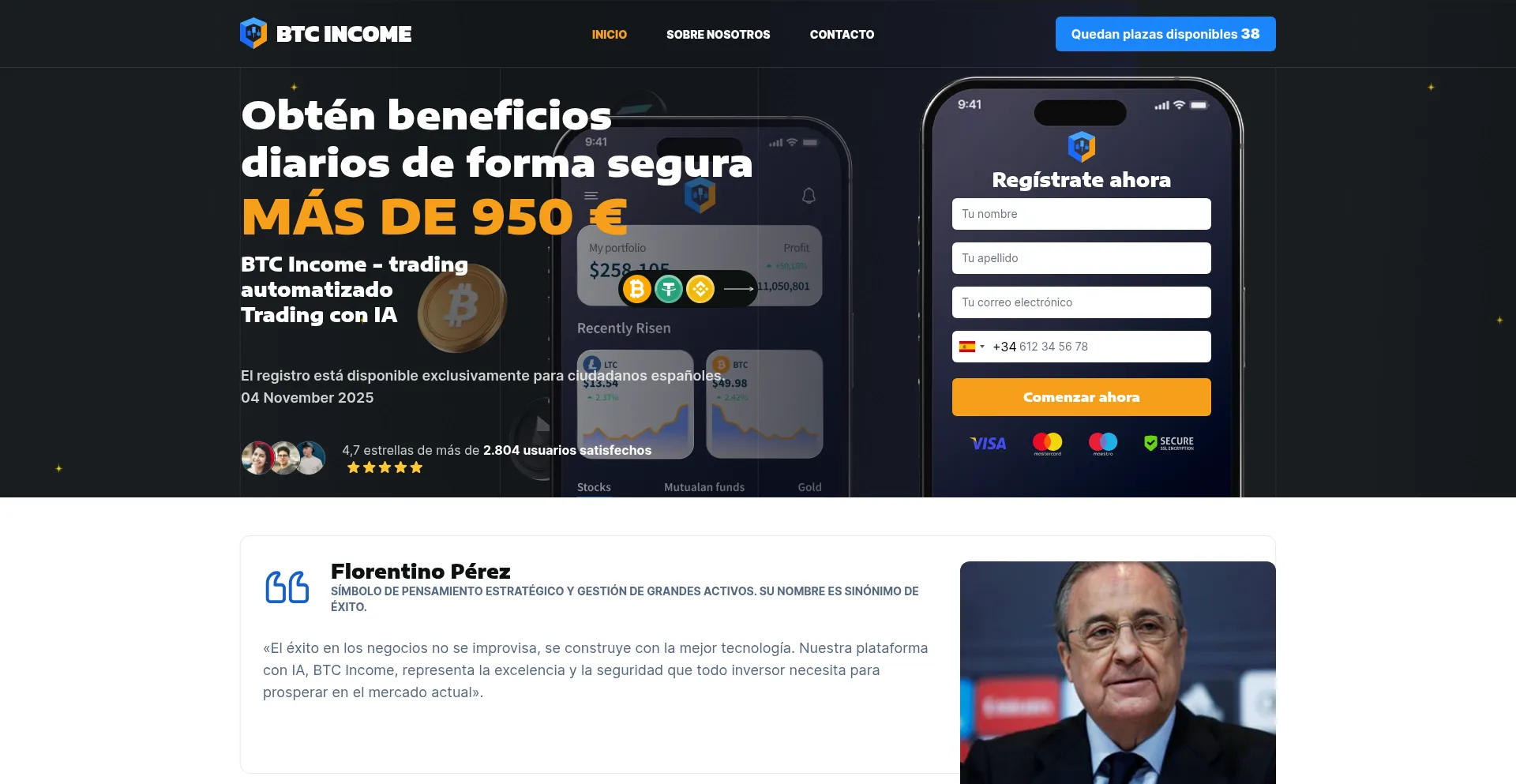 BTC Income - Plataforma Oficial | Trading IA 2025 | Más de 10.000 Reseñas