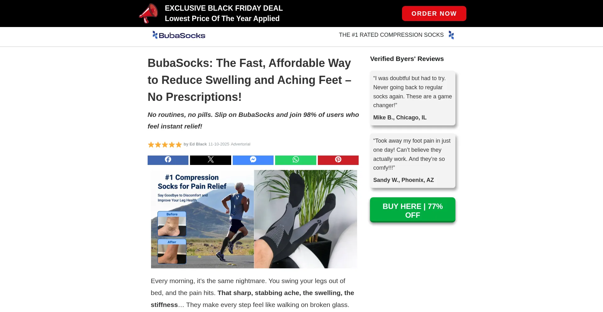Tired of foot pain and swelling? BubaSocks give fast relief with advanced compression. Up to 77% off – try them risk-free today!