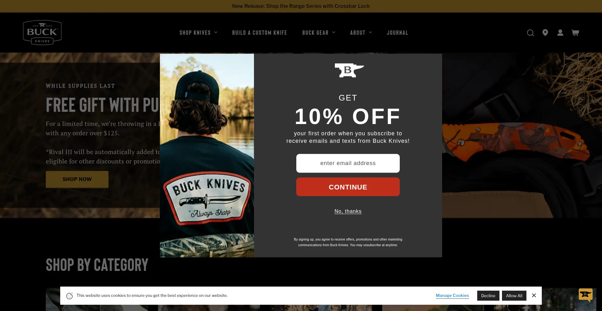 The website implements cookie consent mechanisms in compliance with privacy regulations such as GDPR or CCPA. This demonstrates that buckknives.com adheres to data protection standards and provides users with control over personal data collection practices.