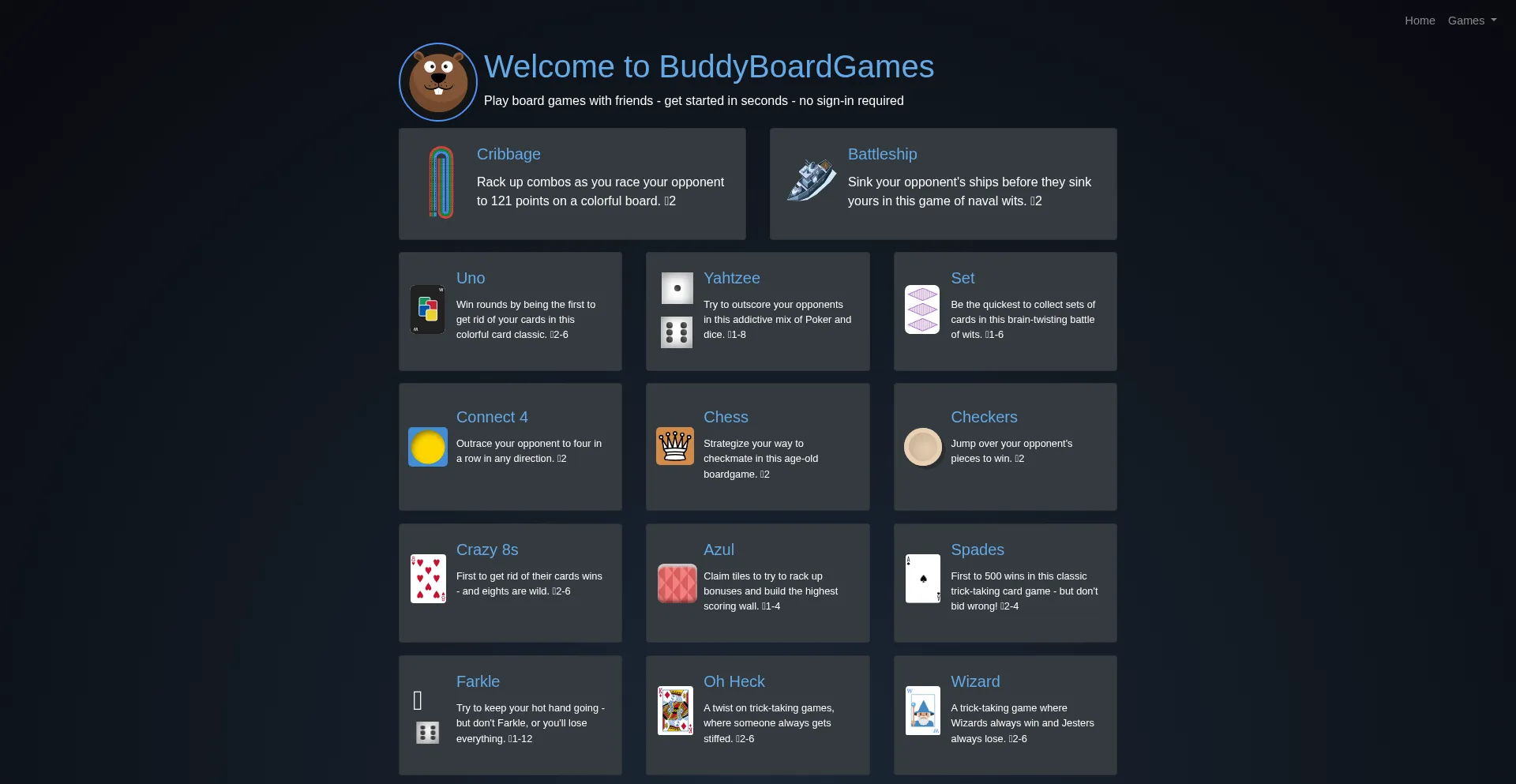 buddyboardgames.com uses Bootstrap, a widely-adopted open-source framework for responsive web development. Bootstrap enables efficient creation of mobile-friendly interfaces through standardized components and styling.
