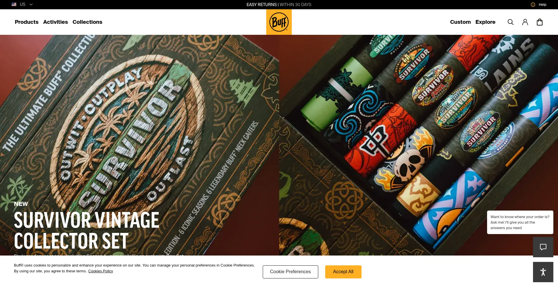 Analysis indicates that buff.com operates as an e-commerce platform facilitating online transactions for goods or services. The website implements shopping cart functionality, payment processing systems, and product catalog features typical of commercial retail operations.