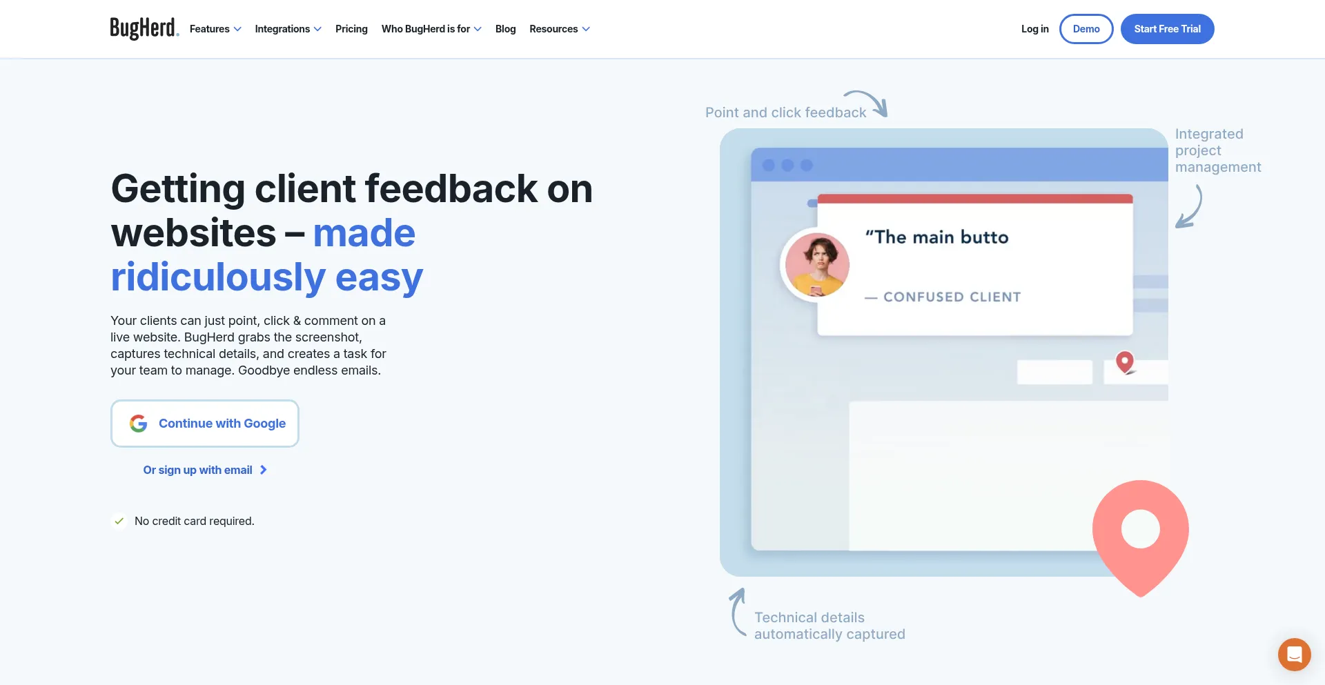 BugHerd makes it easy for clients to give website feedback and bug reports. Clients just point-click-comment. Start a free trial.