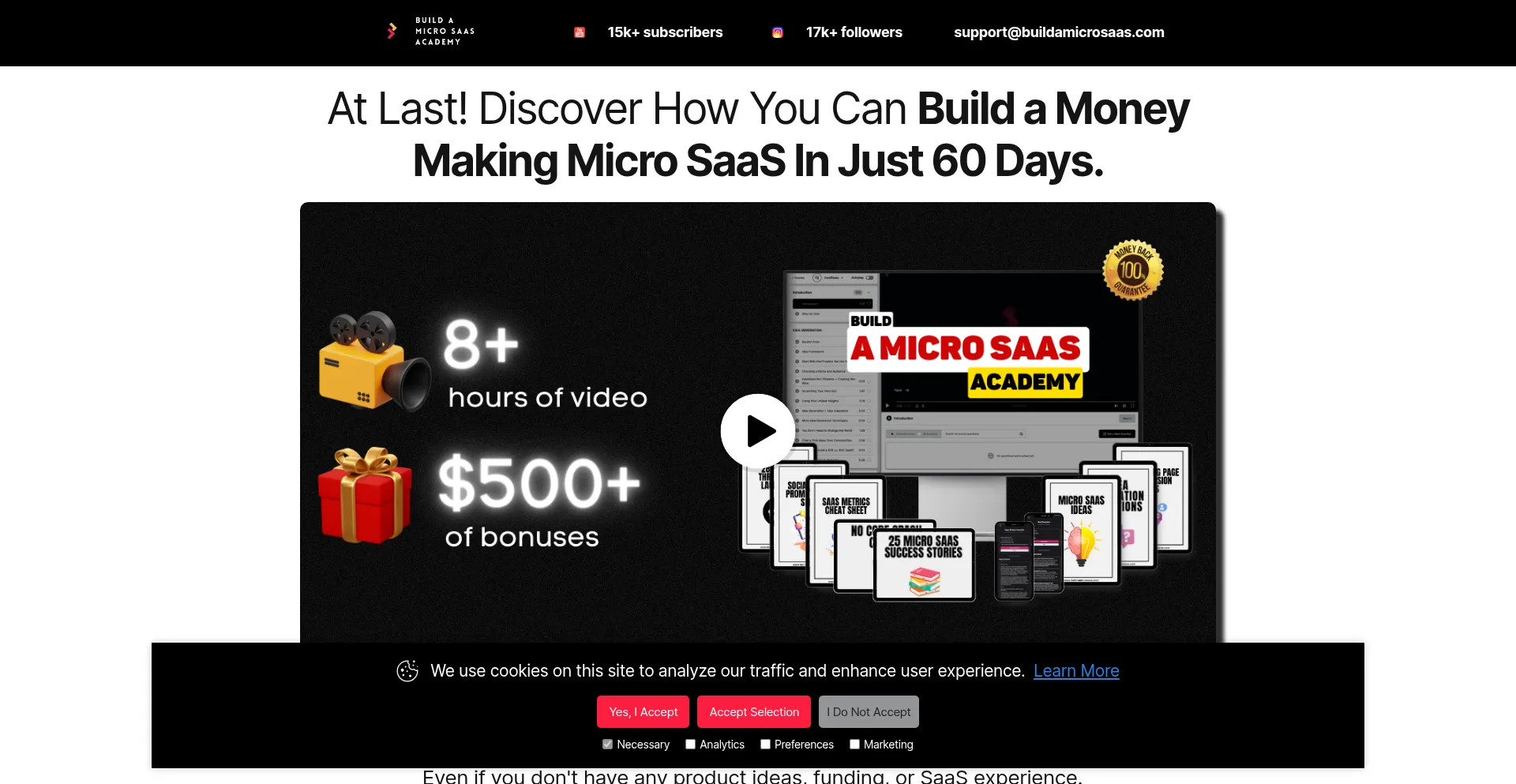 The website implements cookie consent mechanisms in compliance with privacy regulations such as GDPR or CCPA. This demonstrates that buildamicrosaas.com adheres to data protection standards and provides users with control over personal data collection practices.