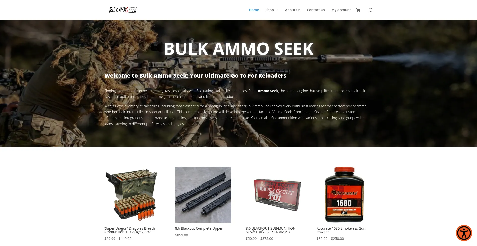 Analysis indicates that bulkammoseek.com operates as an e-commerce platform facilitating online transactions for goods or services. The website implements shopping cart functionality, payment processing systems, and product catalog features typical of commercial retail operations.