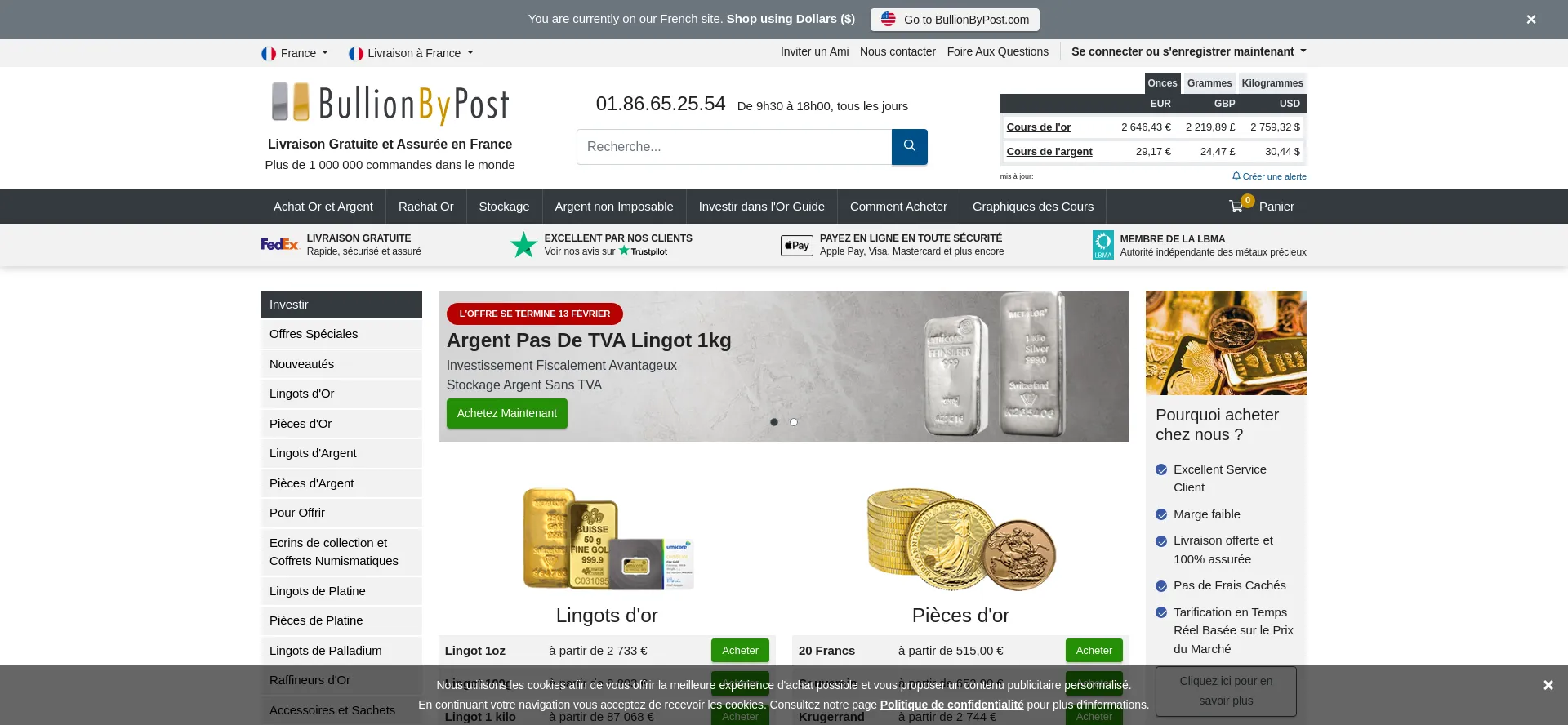 Acheter des pièces et des lingots d'or | BullionByPost.fr