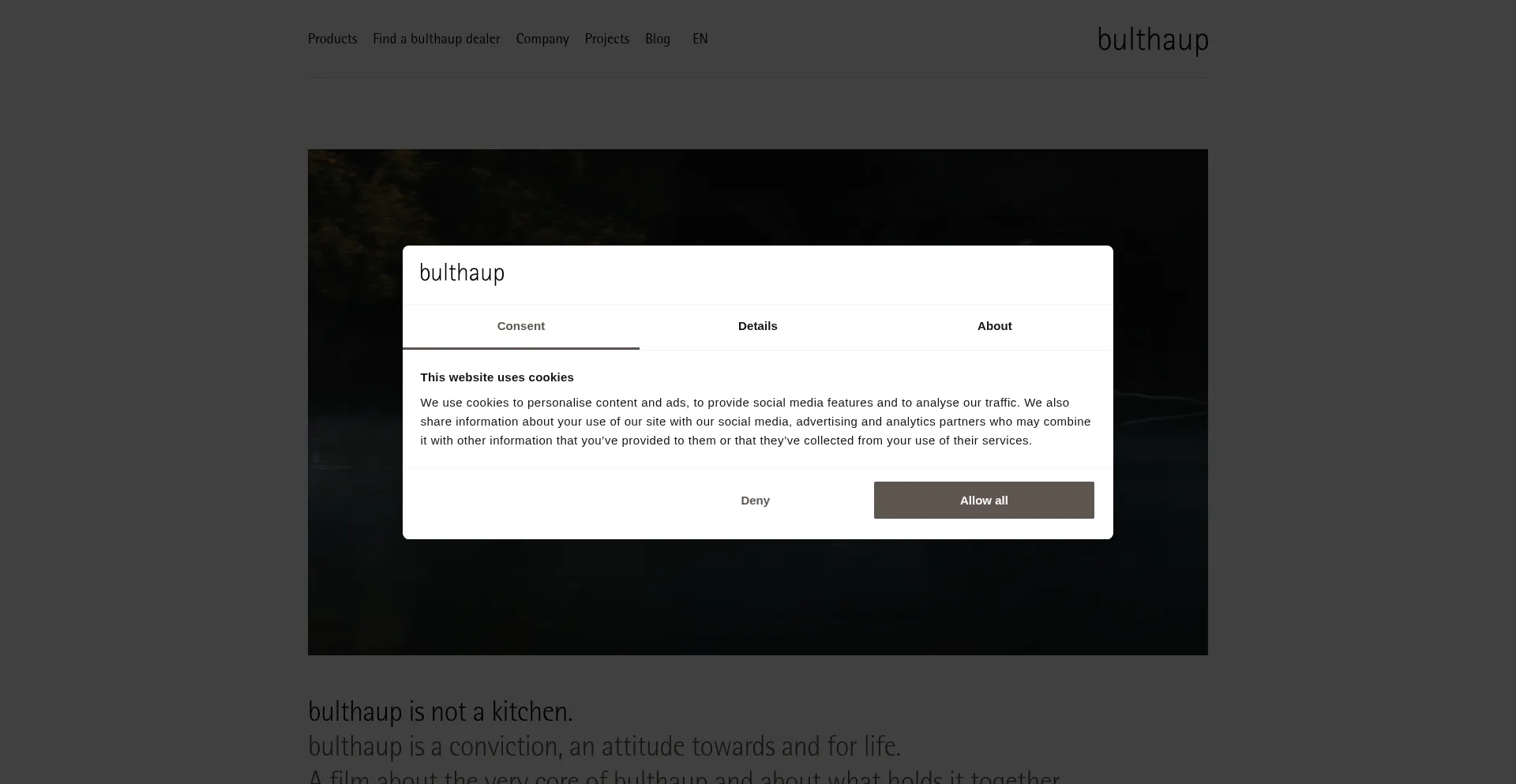 The website implements cookie consent mechanisms in compliance with privacy regulations such as GDPR or CCPA. This demonstrates that bulthaup.com adheres to data protection standards and provides users with control over personal data collection practices.