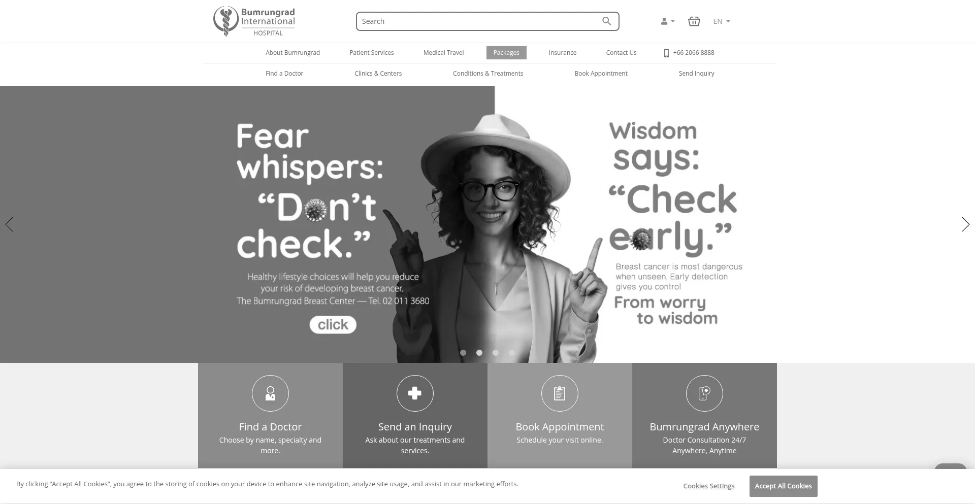 The website implements cookie consent mechanisms in compliance with privacy regulations such as GDPR or CCPA. This demonstrates that bumrungrad.com adheres to data protection standards and provides users with control over personal data collection practices.