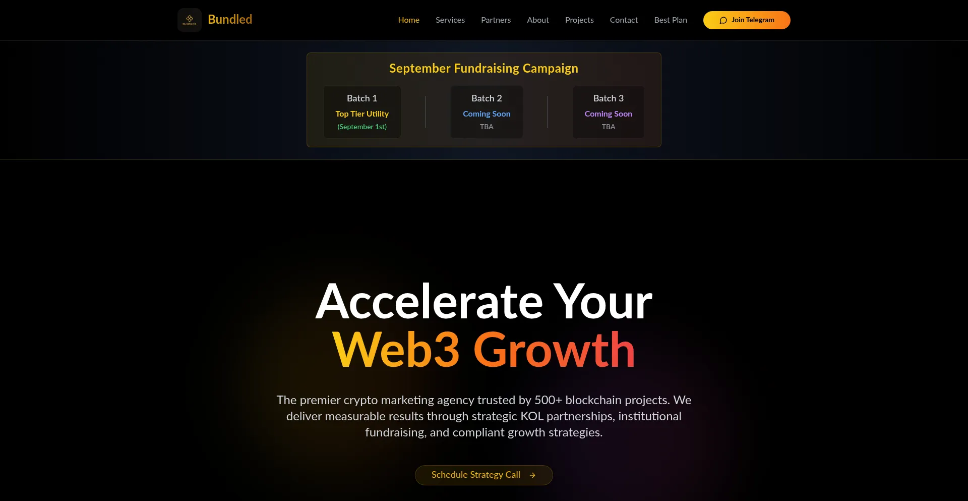 Accelerate your blockchain project's growth with Bundled's expert crypto marketing services. Influencer marketing, fundraising, community growth, and more.