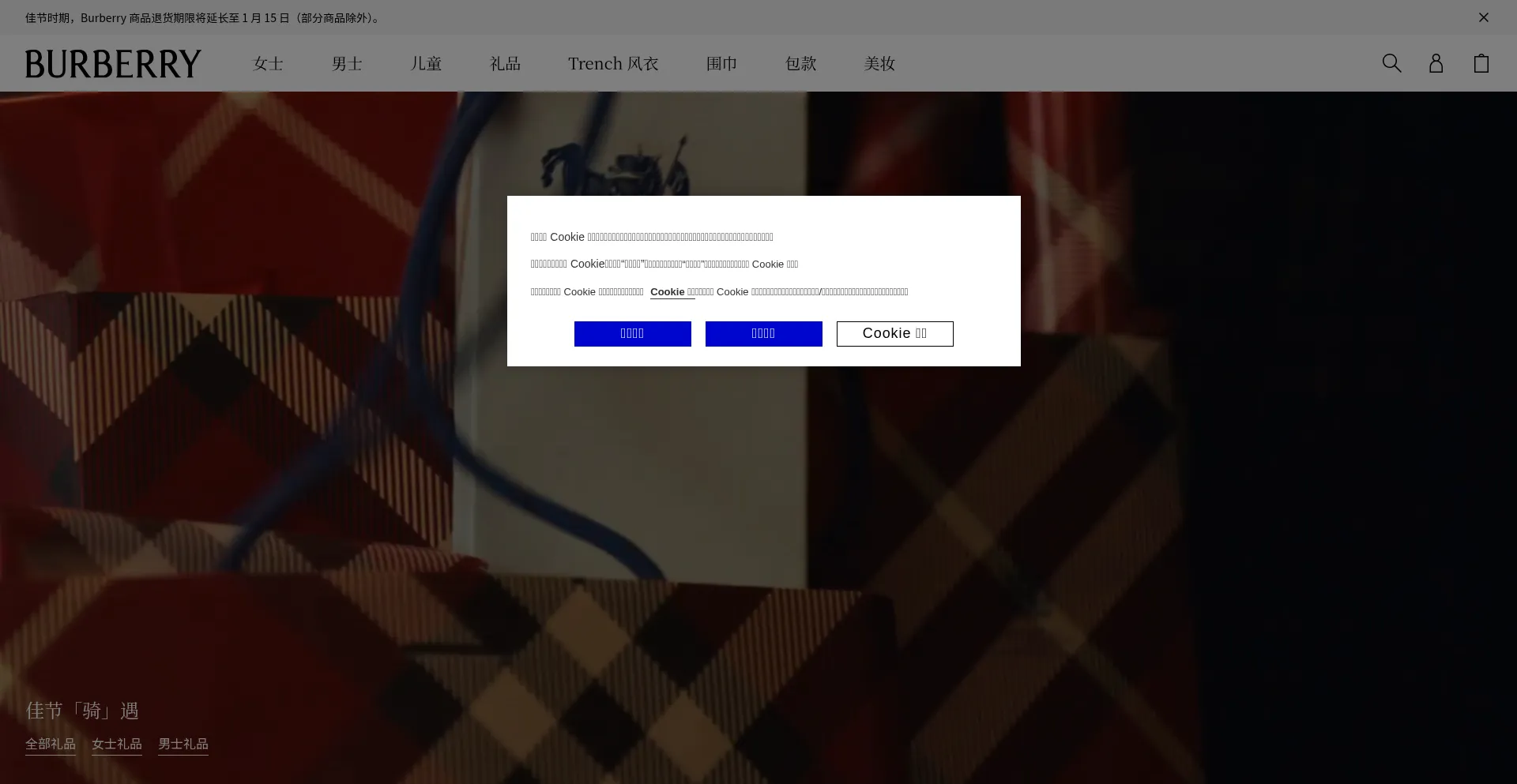 The website implements cookie consent mechanisms in compliance with privacy regulations such as GDPR or CCPA. This demonstrates that burberry.cn adheres to data protection standards and provides users with control over personal data collection practices.