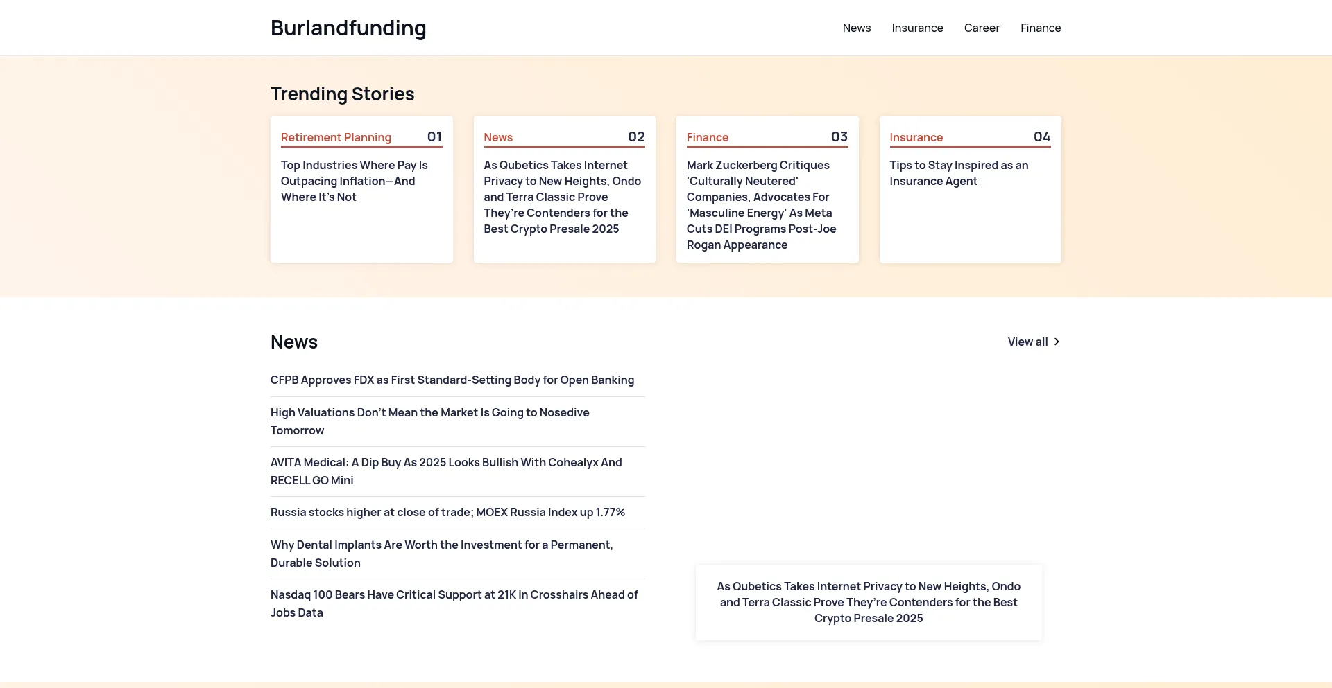 burlandfunding.com uses Bootstrap, a widely-adopted open-source framework for responsive web development. Bootstrap enables efficient creation of mobile-friendly interfaces through standardized components and styling.