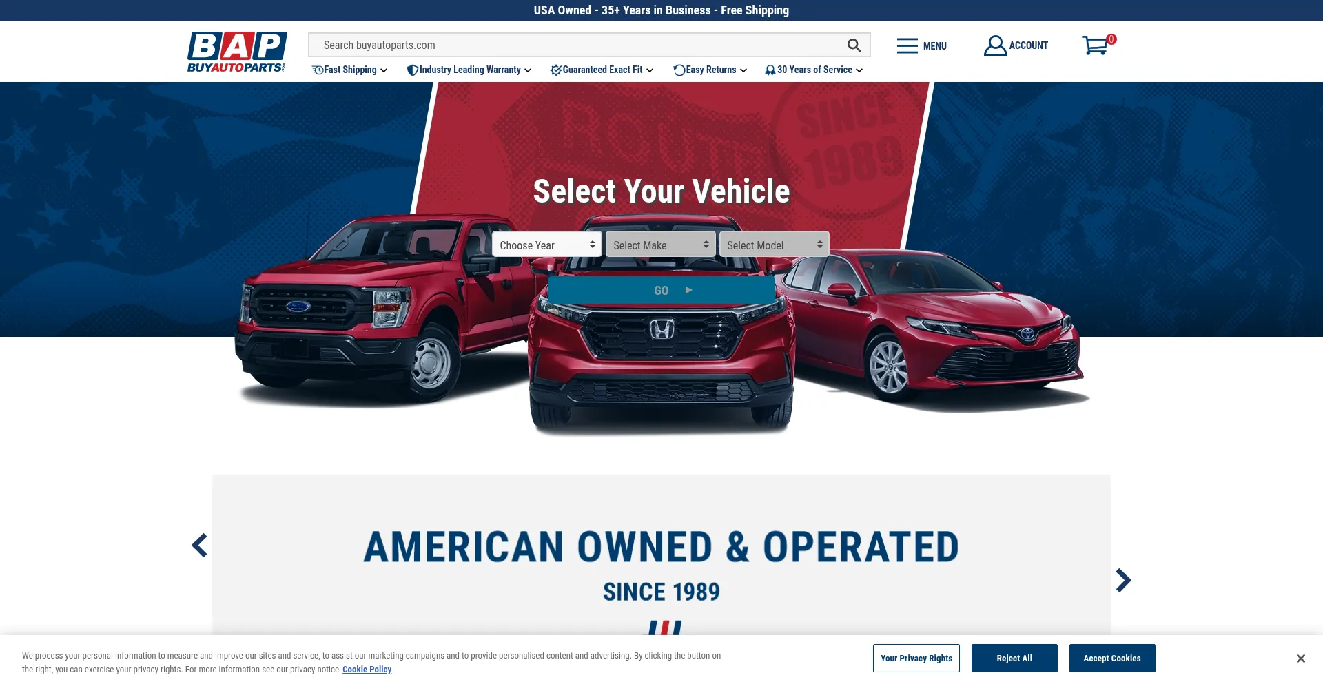 The website implements cookie consent mechanisms in compliance with privacy regulations such as GDPR or CCPA. This demonstrates that buyautoparts.com adheres to data protection standards and provides users with control over personal data collection practices.