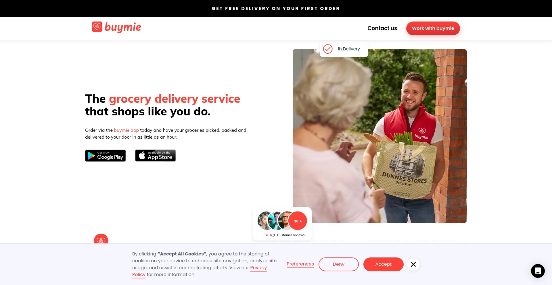 Order via the buymie app today and have your groceries picked, packed and delivered to your door in as little as an hour.