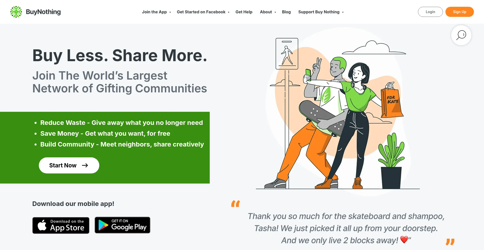 Buy Nothing survives thanks to your generous contributions. Click here to make a charitable donation today to keep the Give-Ask-Gratitude going for everyone.