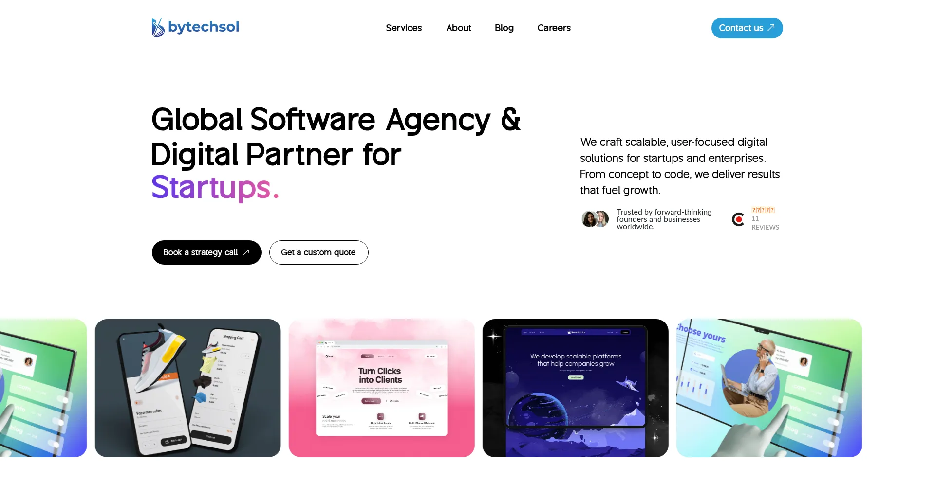 BytechSol is a full-service software agency offering web development, AI/ML solutions, ERP implementation, and digital marketing.