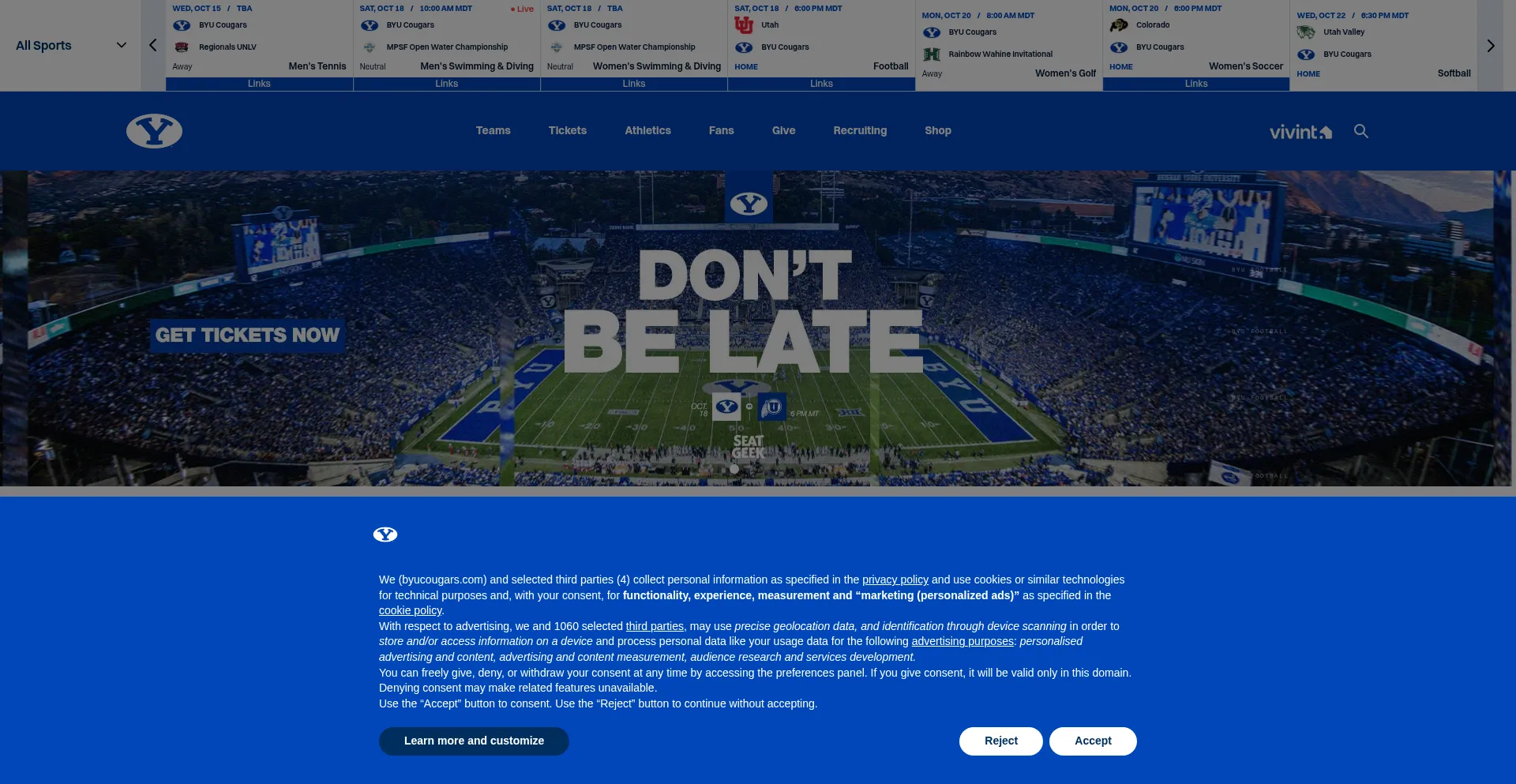 The website implements cookie consent mechanisms in compliance with privacy regulations such as GDPR or CCPA. This demonstrates that byucougars.com adheres to data protection standards and provides users with control over personal data collection practices.