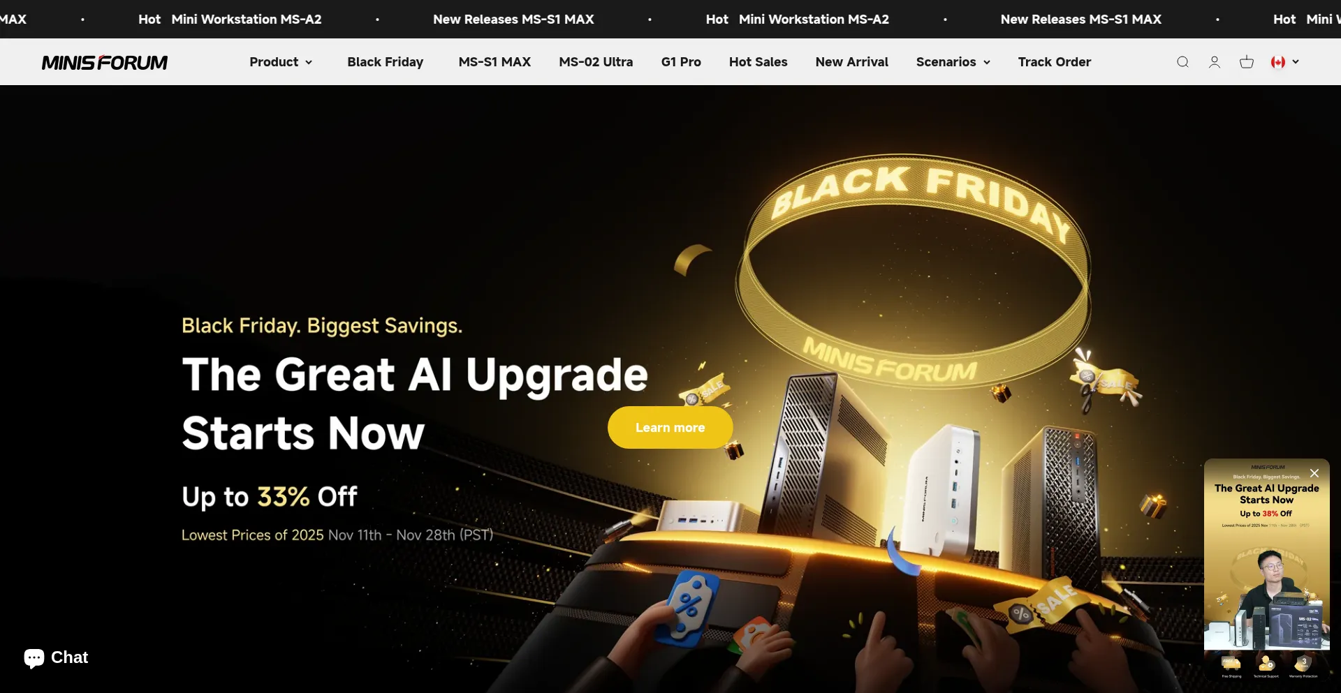 Our analyzer determines that website ca.minisforum.com is using Shopify CMS. Shopify is a popular e-commerce platform, powering around 4.4% of websites globally.