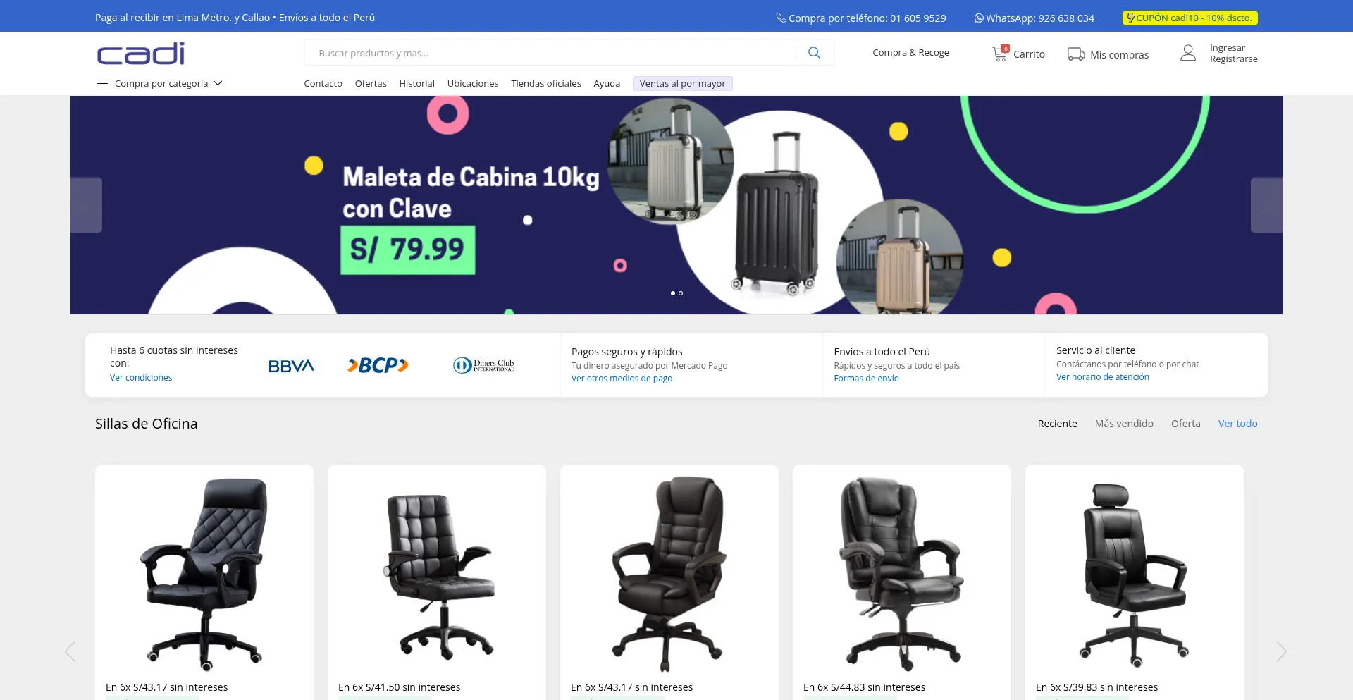 Analysis indicates that cadi.pe operates as an e-commerce platform facilitating online transactions for goods or services. The website implements shopping cart functionality, payment processing systems, and product catalog features typical of commercial retail operations.