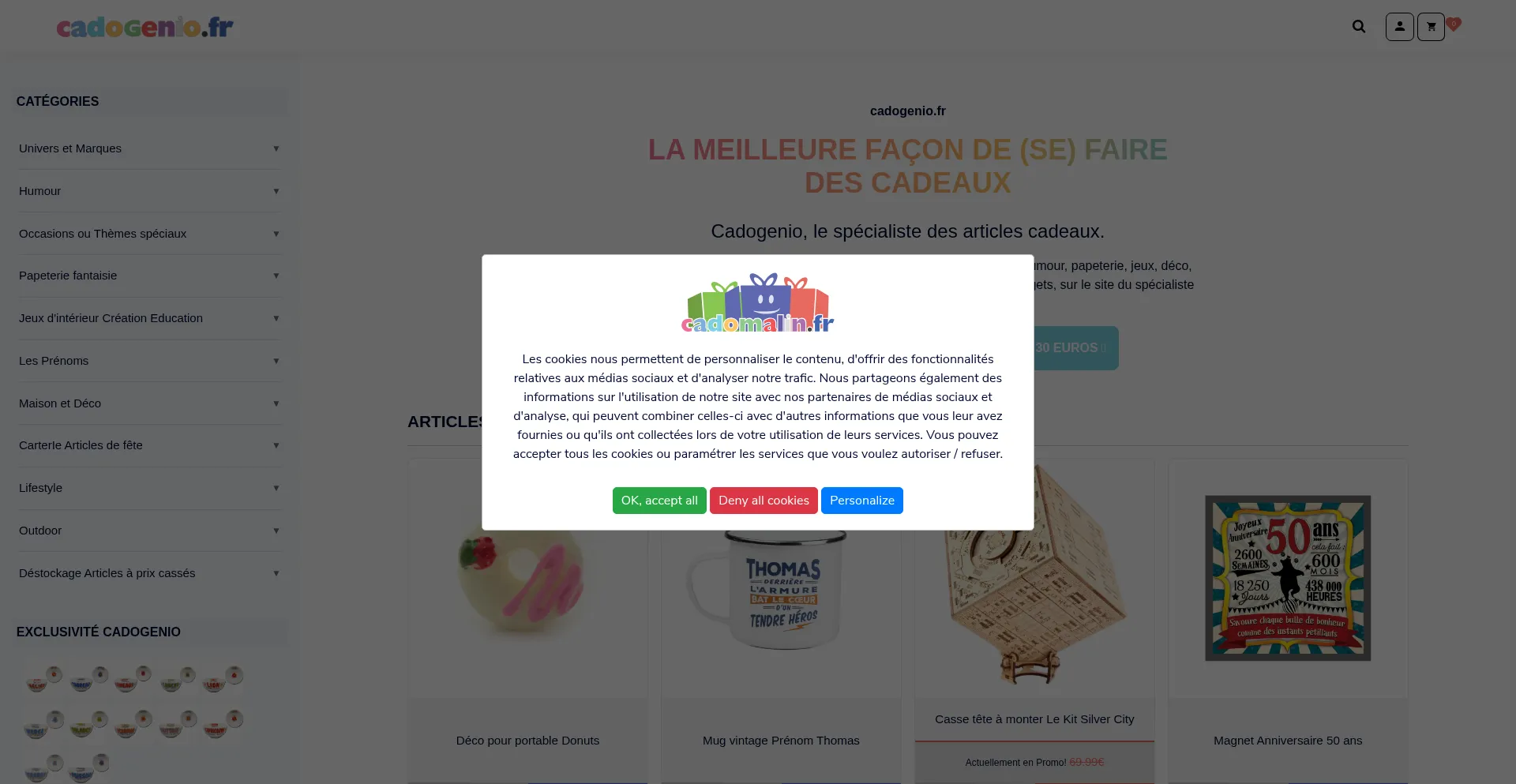 Cadogenio.fr, le spécialiste des articles cadeaux à Marseille : objet cadeau, idée cadeau, humour, papeterie, jeux, déco, carterie, lifestyle, cadeaux à petits prix