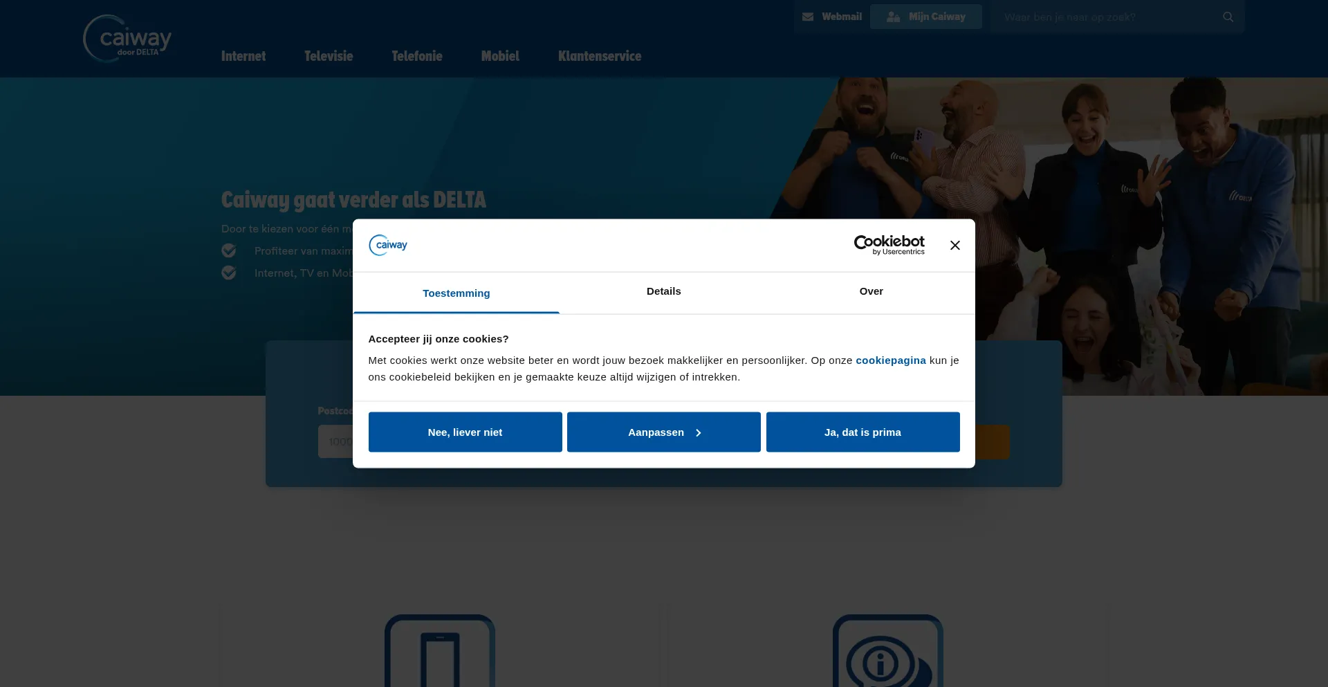 The website implements cookie consent mechanisms in compliance with privacy regulations such as GDPR or CCPA. This demonstrates that caiway.nl adheres to data protection standards and provides users with control over personal data collection practices.