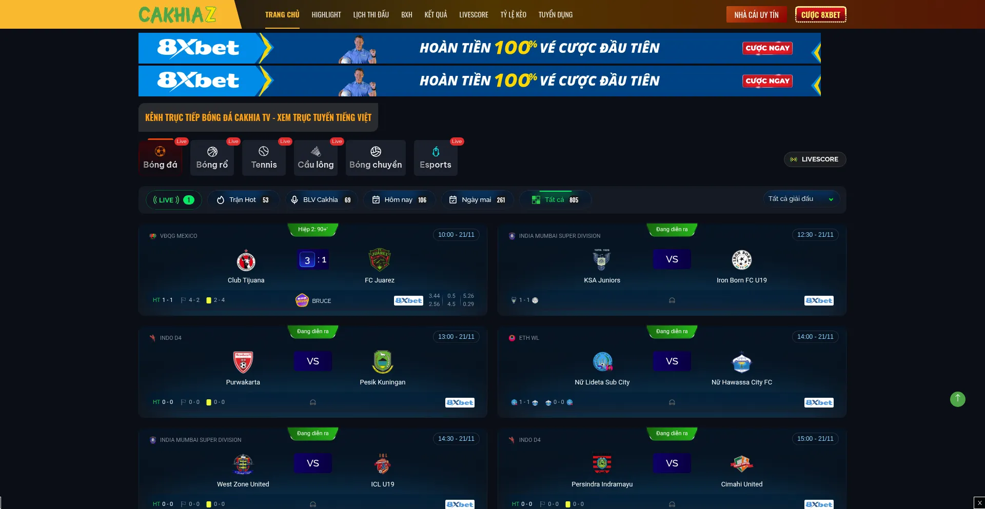 Cakhia TV - Xem Trực Tiếp Bóng Đá, Link Trực Tuyến hôm nay