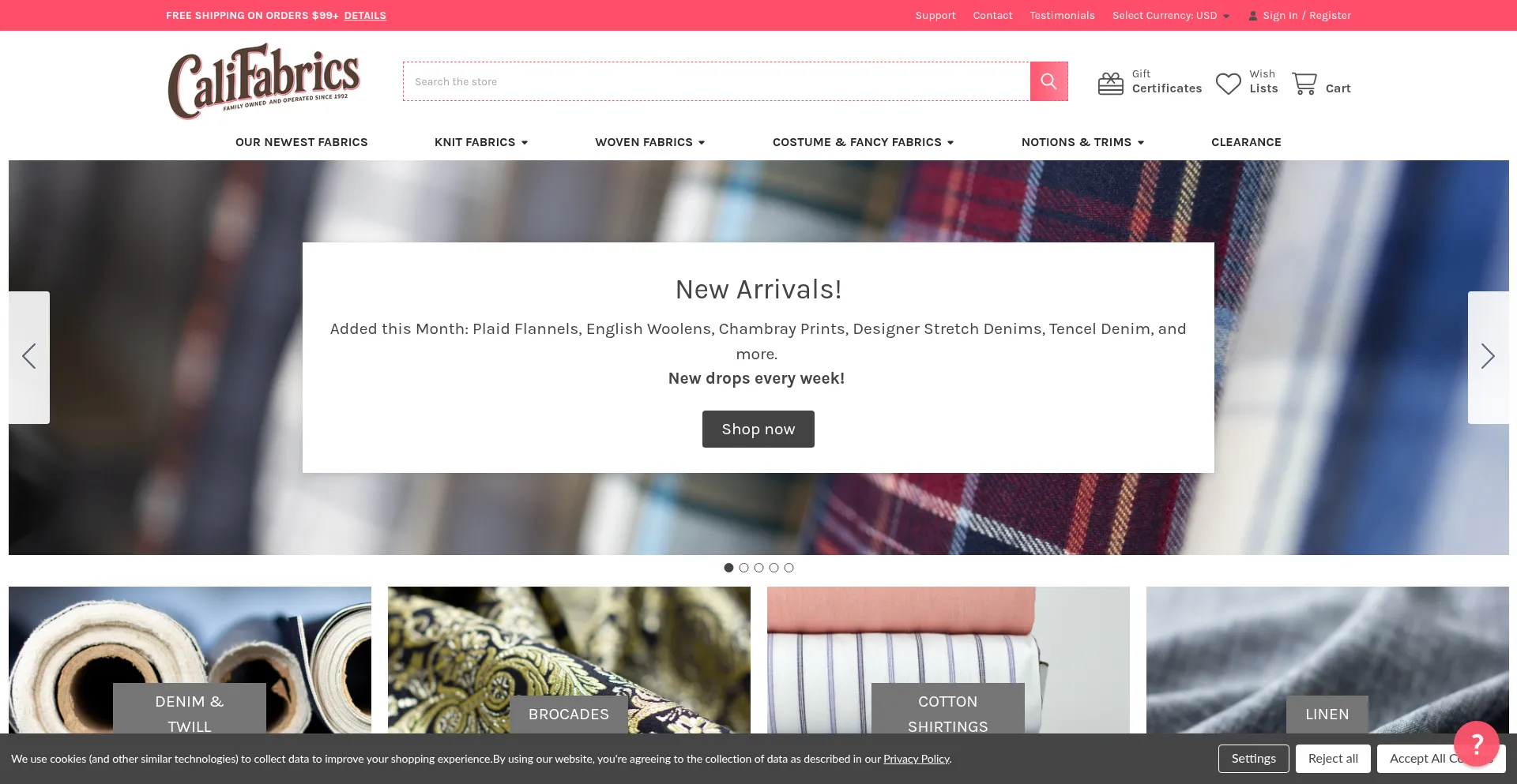 The website implements cookie consent mechanisms in compliance with privacy regulations such as GDPR or CCPA. This demonstrates that califabrics.com adheres to data protection standards and provides users with control over personal data collection practices.